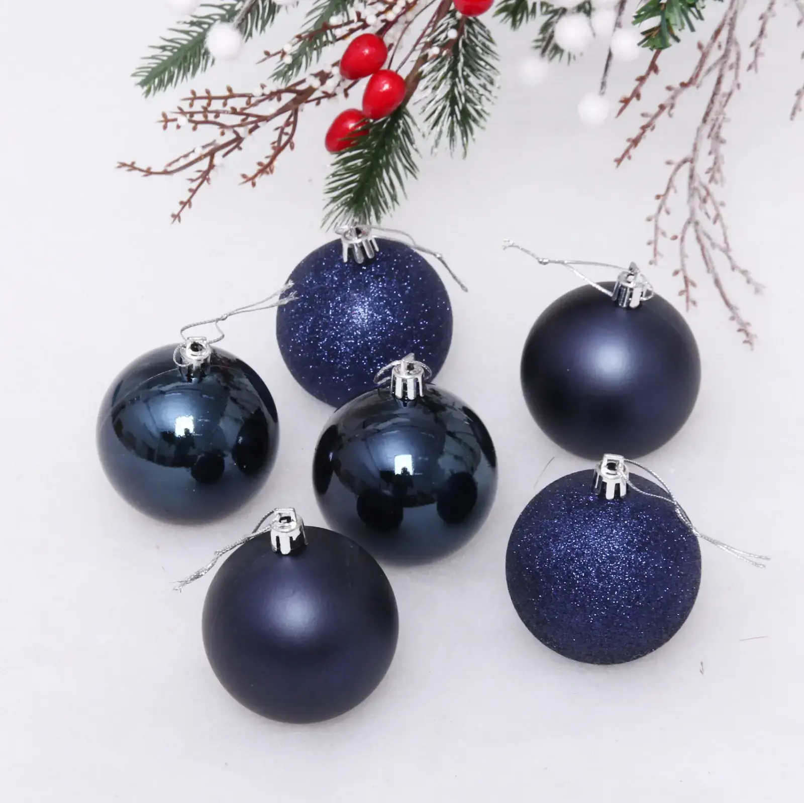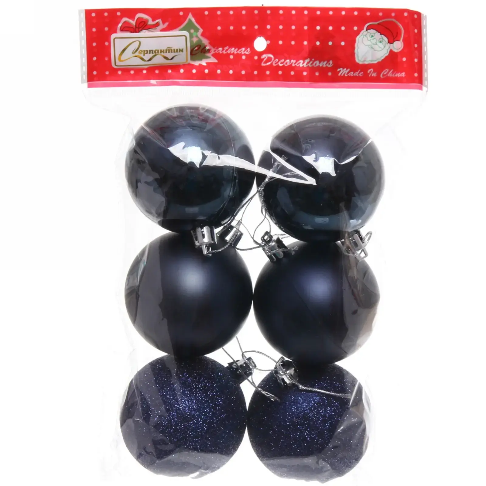 6 элегантных украшений в сине-черной гамме с разными текстурами превратят вашу елку в стильный арт-объект. Сочетание матовых, глянцевых и блестящих поверхностей создает игру света, а универсальная цветовая палитра подчеркивает изысканность декора.