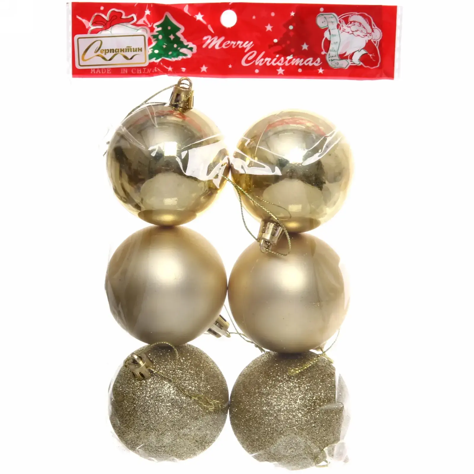 Каждый шар имеет стандартный диаметр 6 см, что делает их универсальными для любого типа елки. В набор входят три матовых и три блестящих шара, что добавляет разнообразия в оформление. Пластиковый материал обеспечивает легкость и устойчивость к повреждениям, что особенно важно в праздничный период, когда шары могут подвергаться активному использованию.