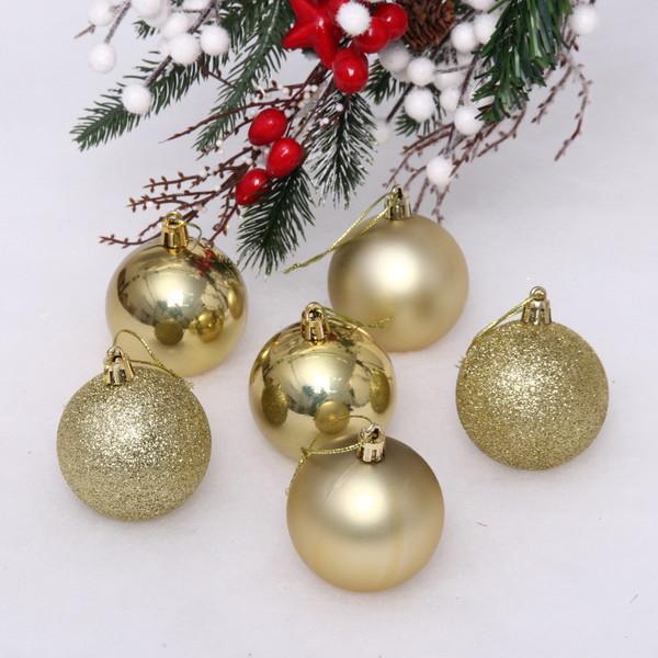 Каждый шар имеет диаметр 6 см. В наборе – шесть изделий, выполненных в разных оттенках золотого: от яркого до более приглушённого, что позволяет гибко комбинировать их в любой новогодней композиции.