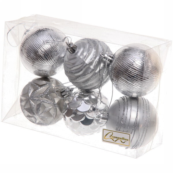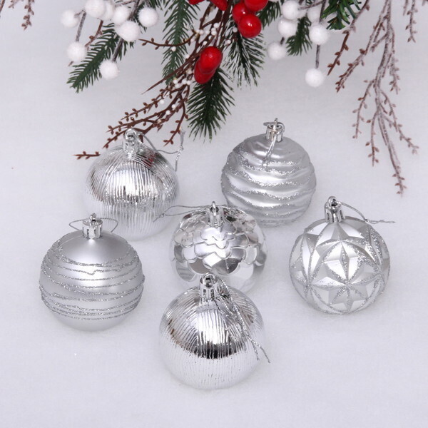 Каждый шар имеет диаметр 6 см и выполнен из прочного пластика, что обеспечивает их легкость и безопасность. Серебристый цвет и разнообразие текстур делают этот набор идеальным для создания стильного новогоднего оформления. Упаковка шары аккуратная и презентабельная, что позволяет использовать её в качестве подарка для близких и друзей.