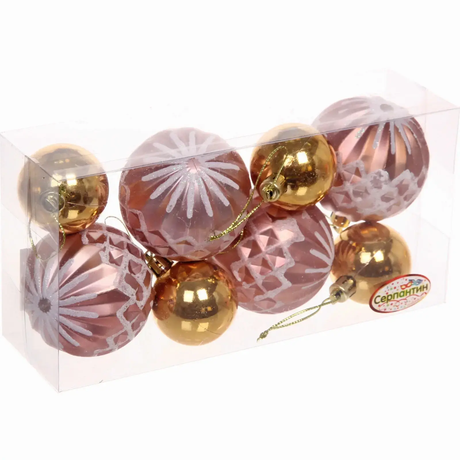 В наборе вы найдете 8 шаров, каждый из которых имеет диаметр 6 см. Шары выполнены из качественного пластика, что делает их легкими и безопасными для использования в любом интерьере. Не упустите возможность сделать ваш Новый год незабываемым с этими великолепными шарами!