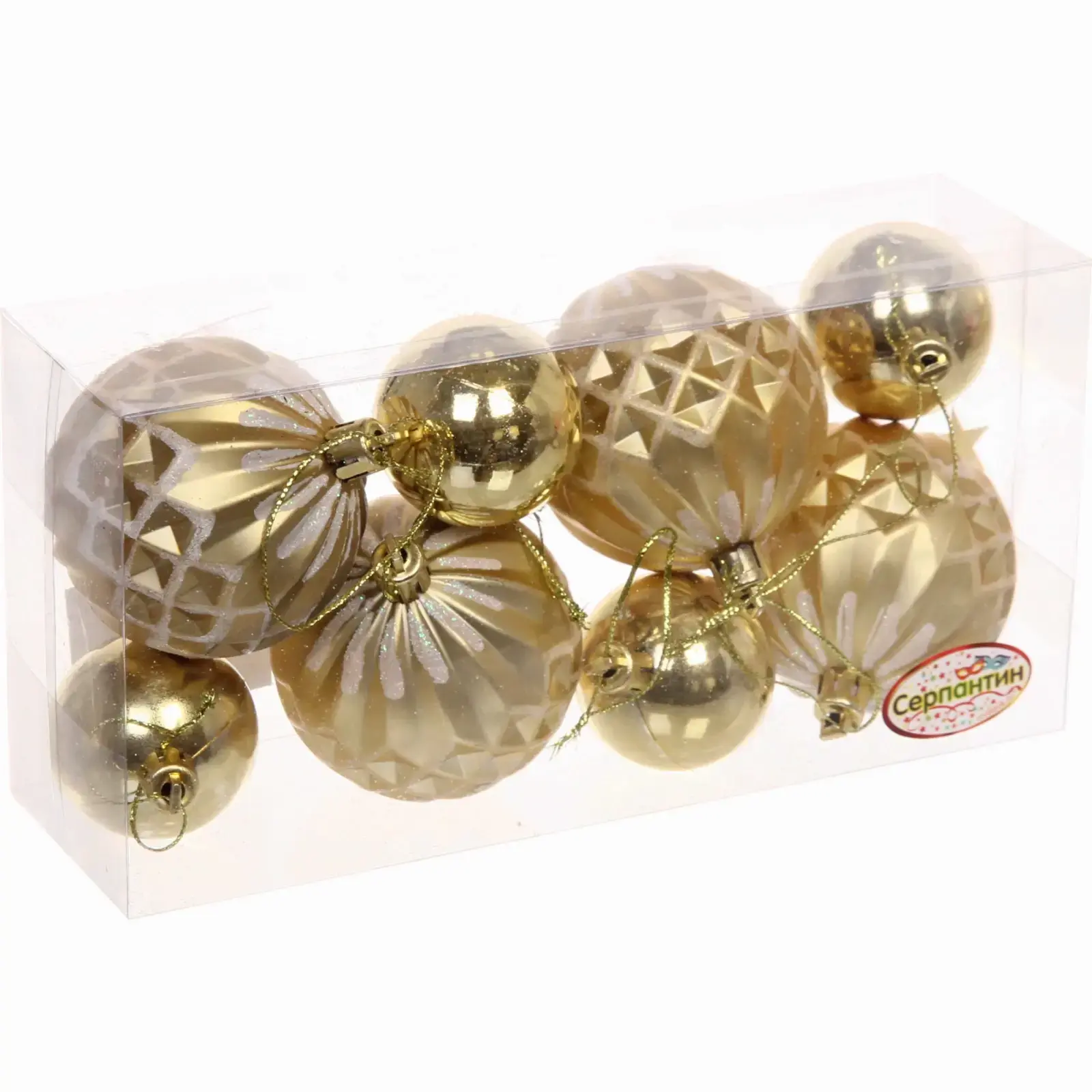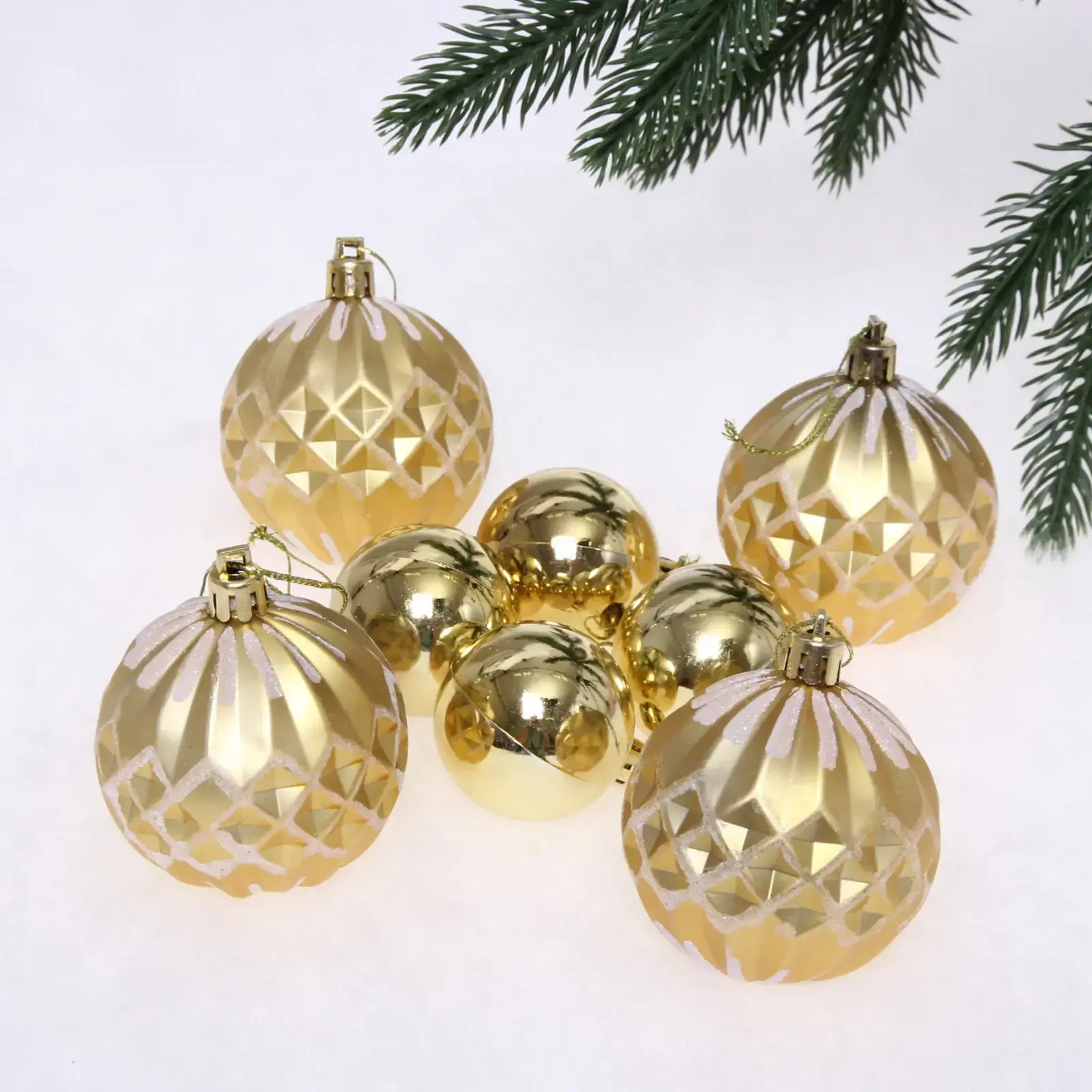 Шары идеально подходят для украшения новогодней елки, а также могут использоваться для декорирования интерьера в праздничные дни. Благодаря легкому весу и прочному материалу, их легко подвешивать на ветках, а металлические элементы для подвешивания обеспечивают надежность. Набор состоит из 8 шаров, что позволяет создать гармоничное оформление, сочетая разные формы и текстуры.