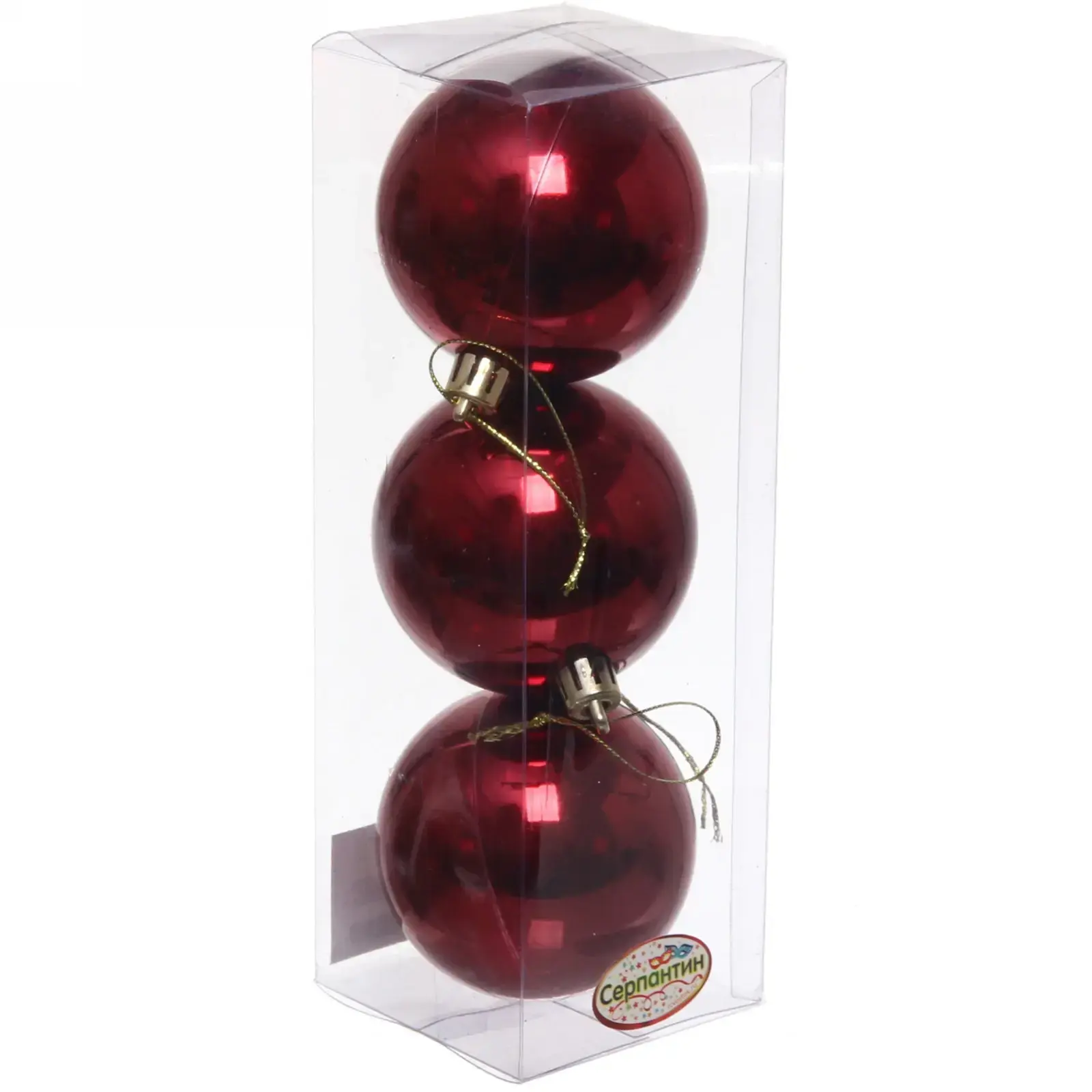 Новогодние шары — это не просто украшения, это символы волшебства и радости, которые наполняют ваш дом теплом и уютом. Набор из трех пластиковых шаров диаметром 7 см в темном рубиновом цвете с глянцевой поверхностью станет идеальным дополнением к вашему новогоднему декору. Эти шары не только красивы, но и практичны, так как их легко повесить на елку благодаря золотистым петелькам.