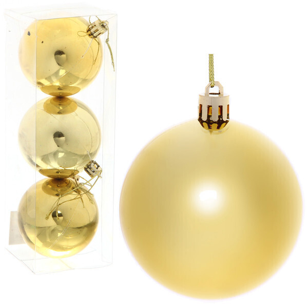 Новогодние шары — это не просто украшения, это символы волшебства и радости, которые наполняют наш дом теплом и уютом. Набор из трех золотых глянцевых шаров диаметром 7 см станет идеальным дополнением к вашему новогоднему декору. Эти шары легко впишутся в любой интерьер, добавляя ему яркости и стиля.