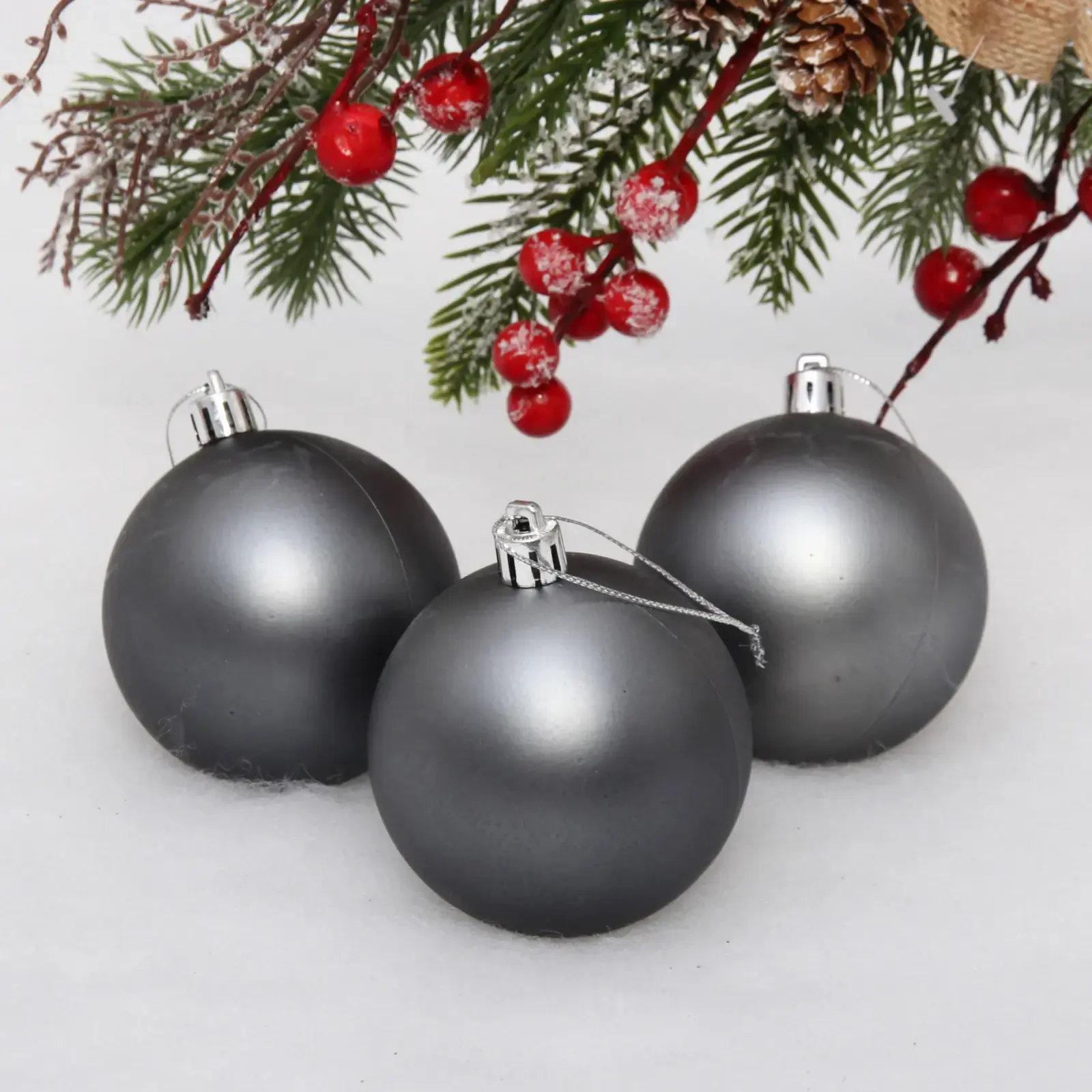 Новогодние шары 7 см (набор 3 шт) «Матовый», графит, пластик, для елки и декорирования