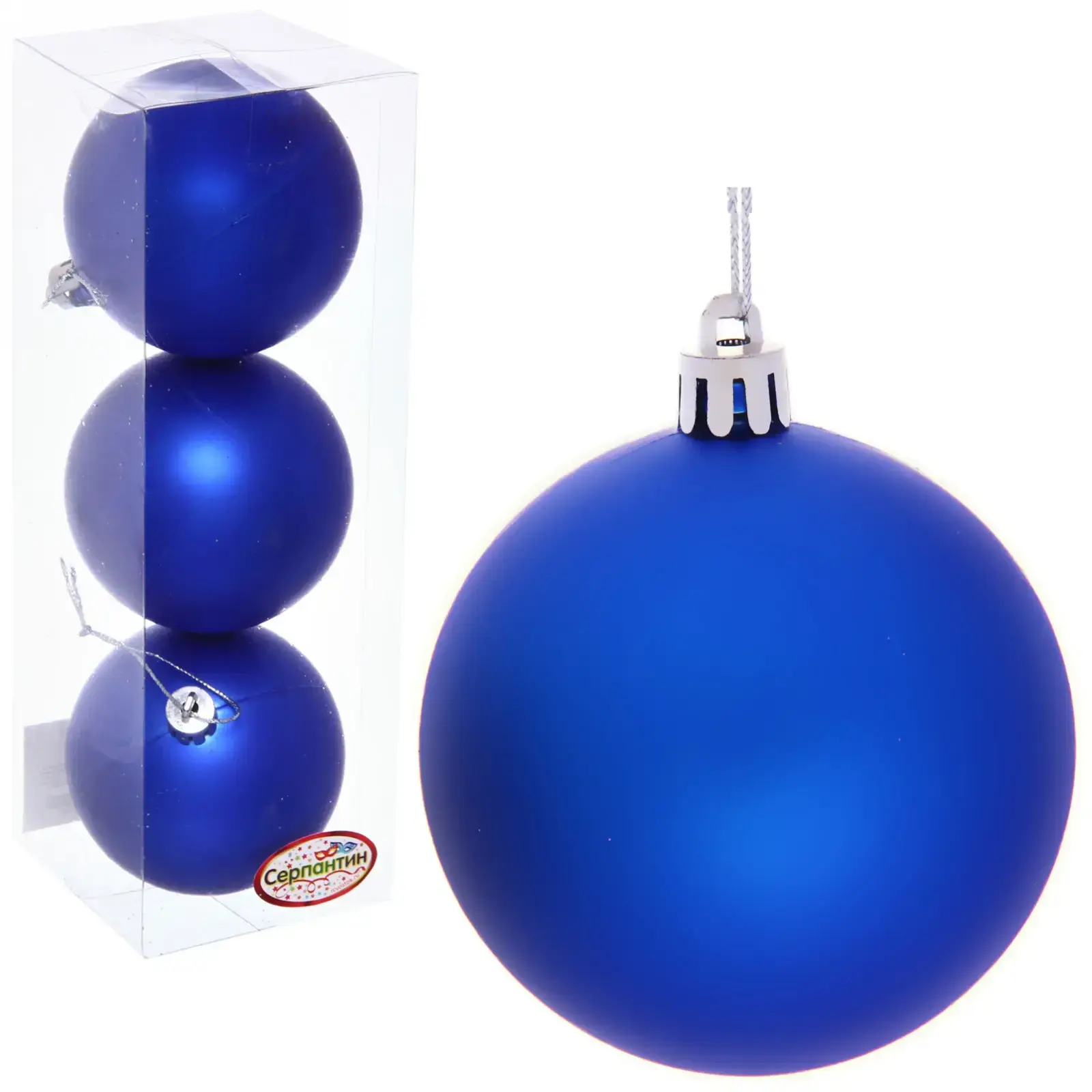 Набор из трёх матовых шаров насыщенного синего цвета — готовое решение для стильного оформления новогодней елки. Идеальный размер 7 см сочетает традиции и современный дизайн, подчёркивая изысканный вкус владельца.