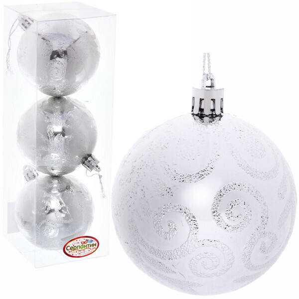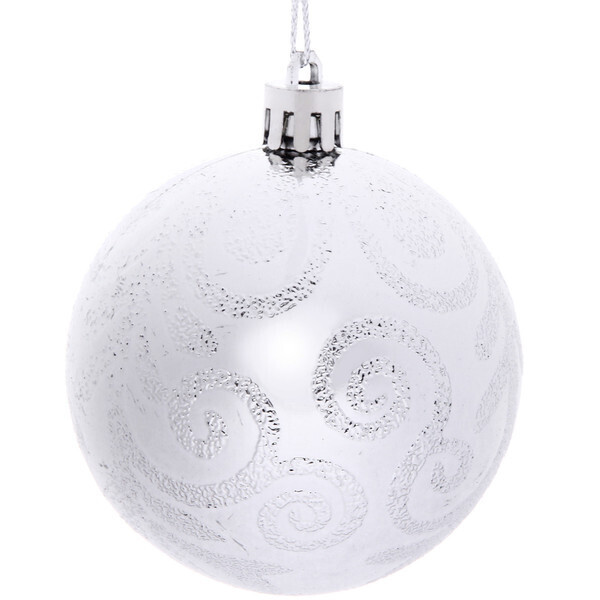 Серебристый новогодний шар с рельефным узором — создайте атмосферу праздника!