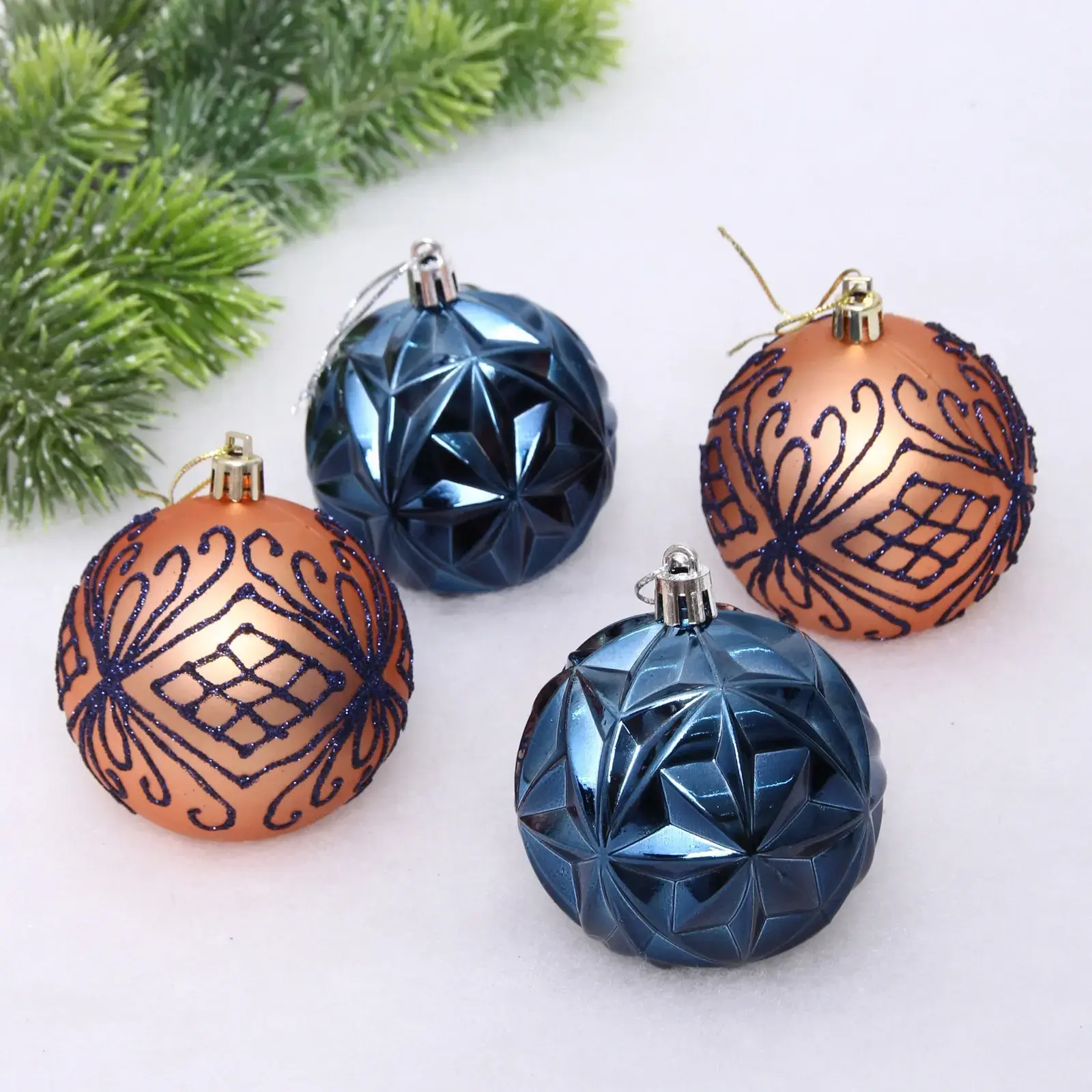 Шары идеально подходят для декорирования новогодней елки, а также могут использоваться для создания праздничных композиций и украшения интерьера. Они легко подвешиваются благодаря металлическим петелькам, что делает процесс декорирования простым и приятным. Набор состоит из четырех шаров, что позволяет вам разнообразить оформление и создать уникальный стиль.