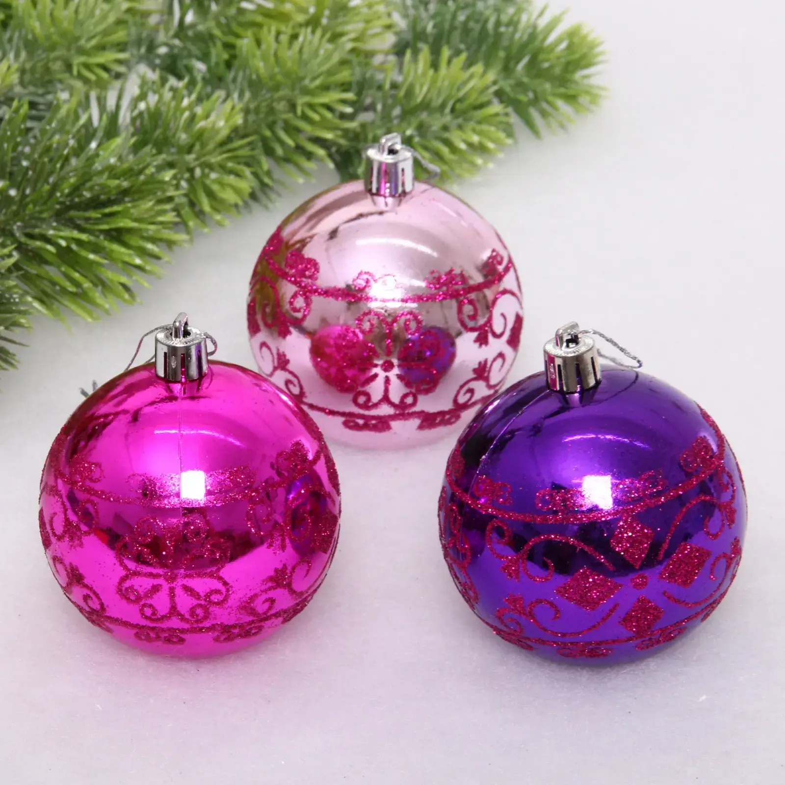 Шары диаметром 7 см идеально подходят для украшения новогодней елки, а также могут использоваться для создания стильных композиций в интерьере. Они легко подвешиваются благодаря металлическим креплениям, что делает процесс декорирования простым и удобным. Набор состоит из трех шаров: ярко-розового, светло-розового и фиолетового, что позволяет создать гармоничное сочетание цветов.
