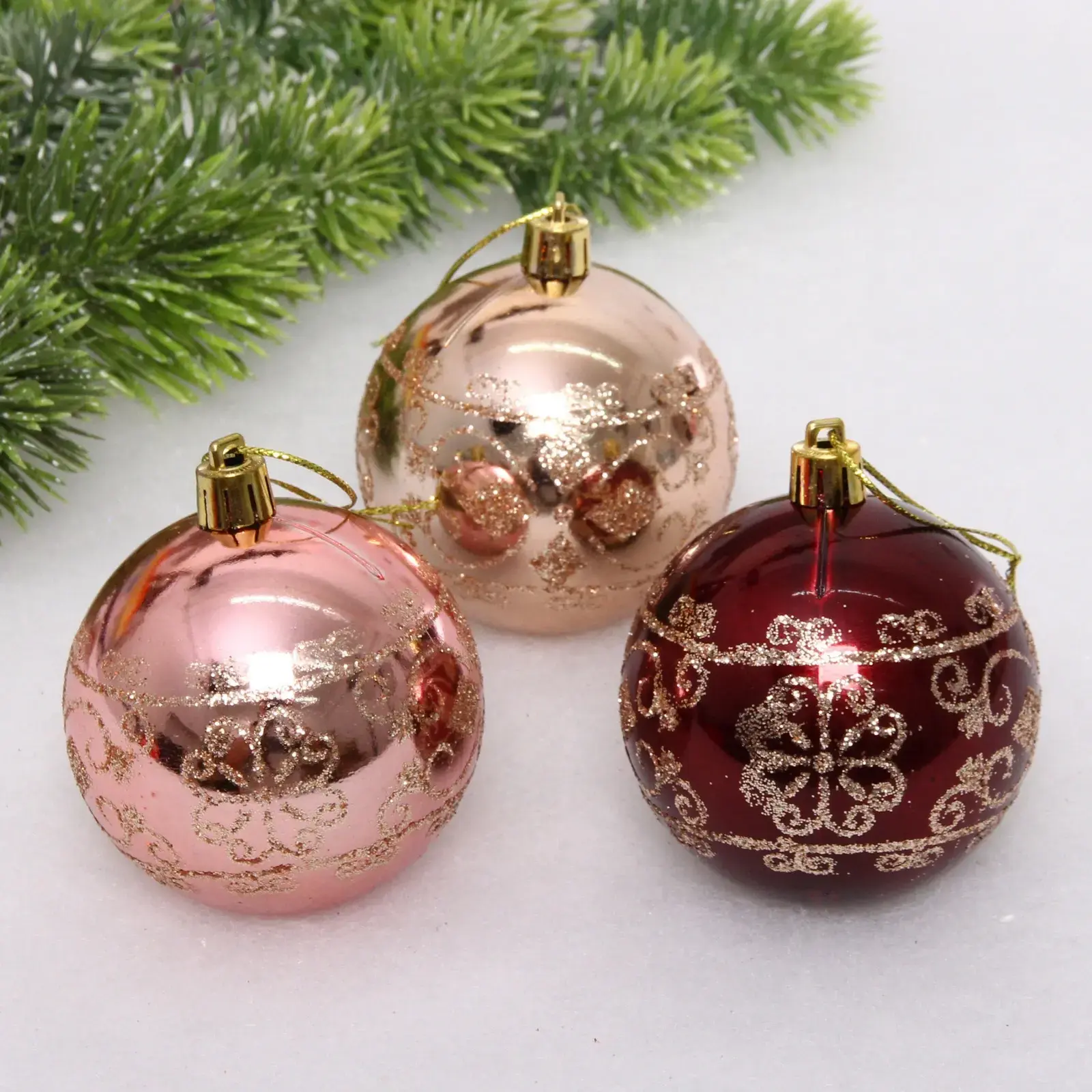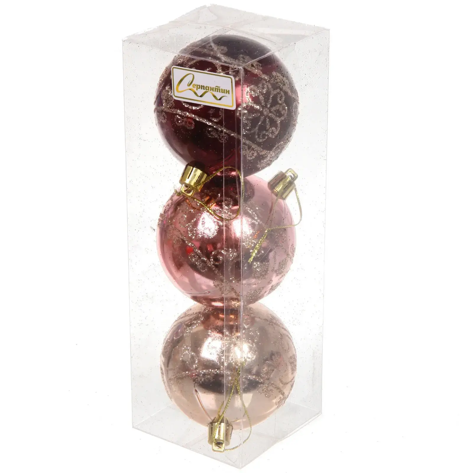 Каждый шар имеет размер 7 см, что делает их идеальными для любой елки. Цветовая гамма включает шампань, розовое золото и рубин, что позволяет легко сочетать их с другими элементами декора. Упаковка из прозрачного пластика обеспечивает защиту шаров и позволяет удобно хранить их после праздников.