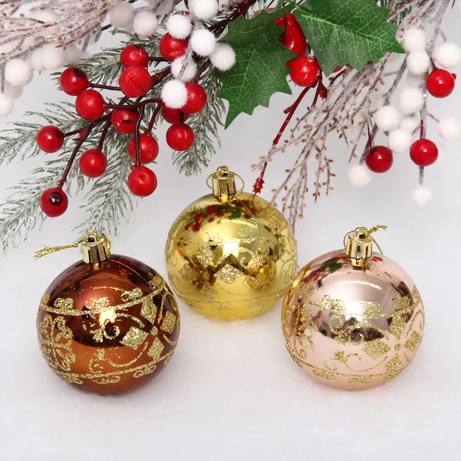 Эти новогодние шары станут идеальным украшением для вашей ёлки, добавляя атмосферу уюта и праздника. Каждый шар имеет уникальный дизайн и выполнен в трех стильных цветах: шоколадном, золотом и шампань. Они не только красивы, но и практичны, так как изготовлены из прочного пластика, что обеспечивает их долговечность и безопасность.