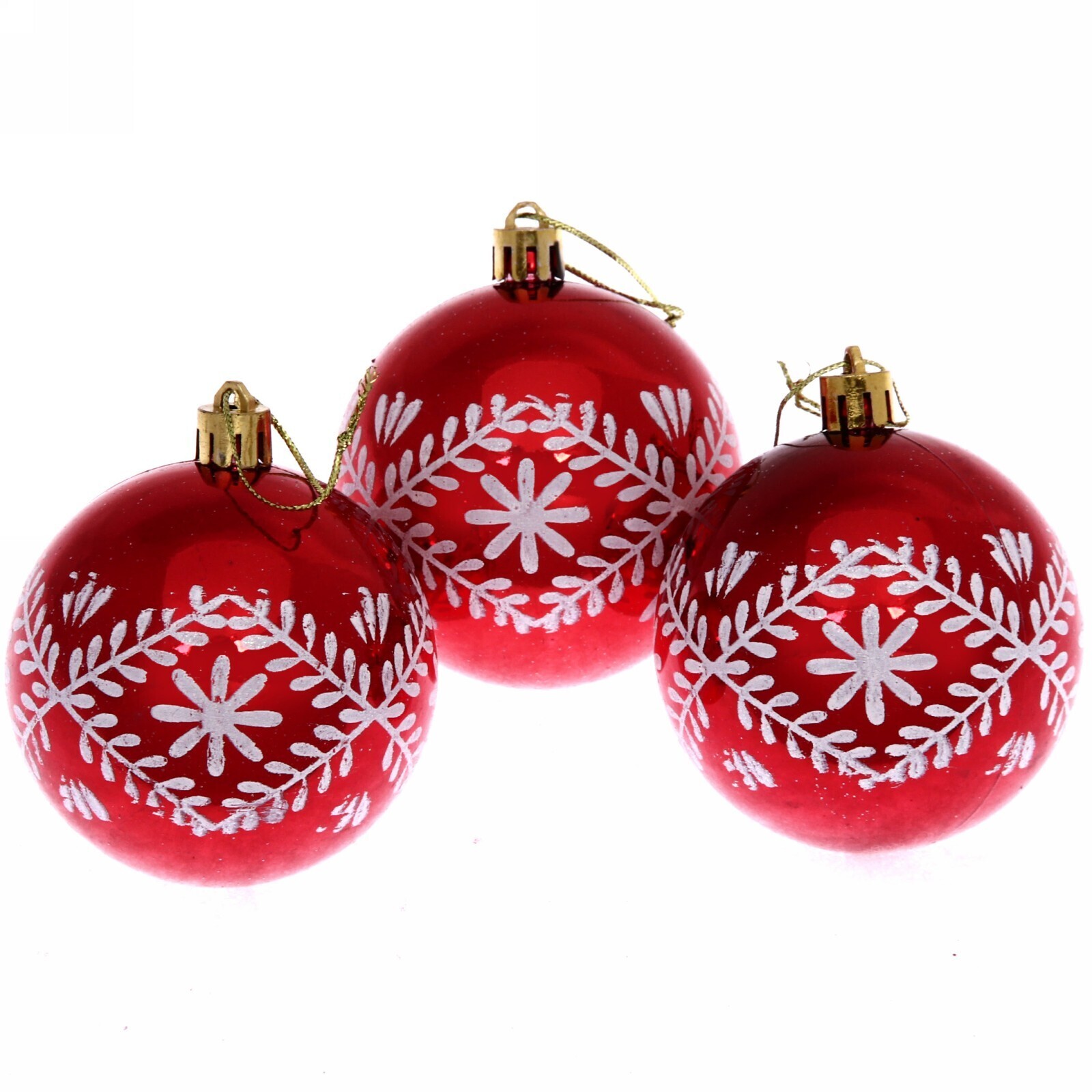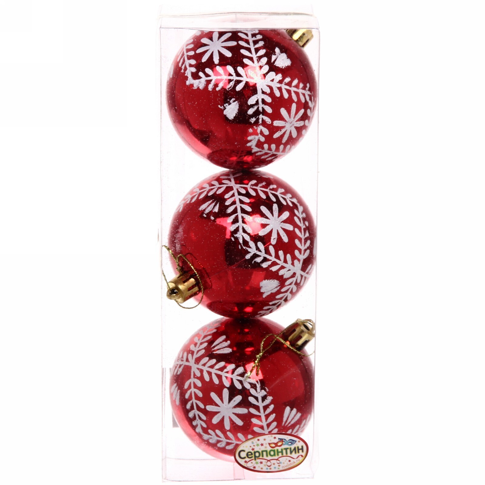 Новогодние шары 7см (набор 3шт) «Хвойные веточки», красный, пластик, для елки и декорирования