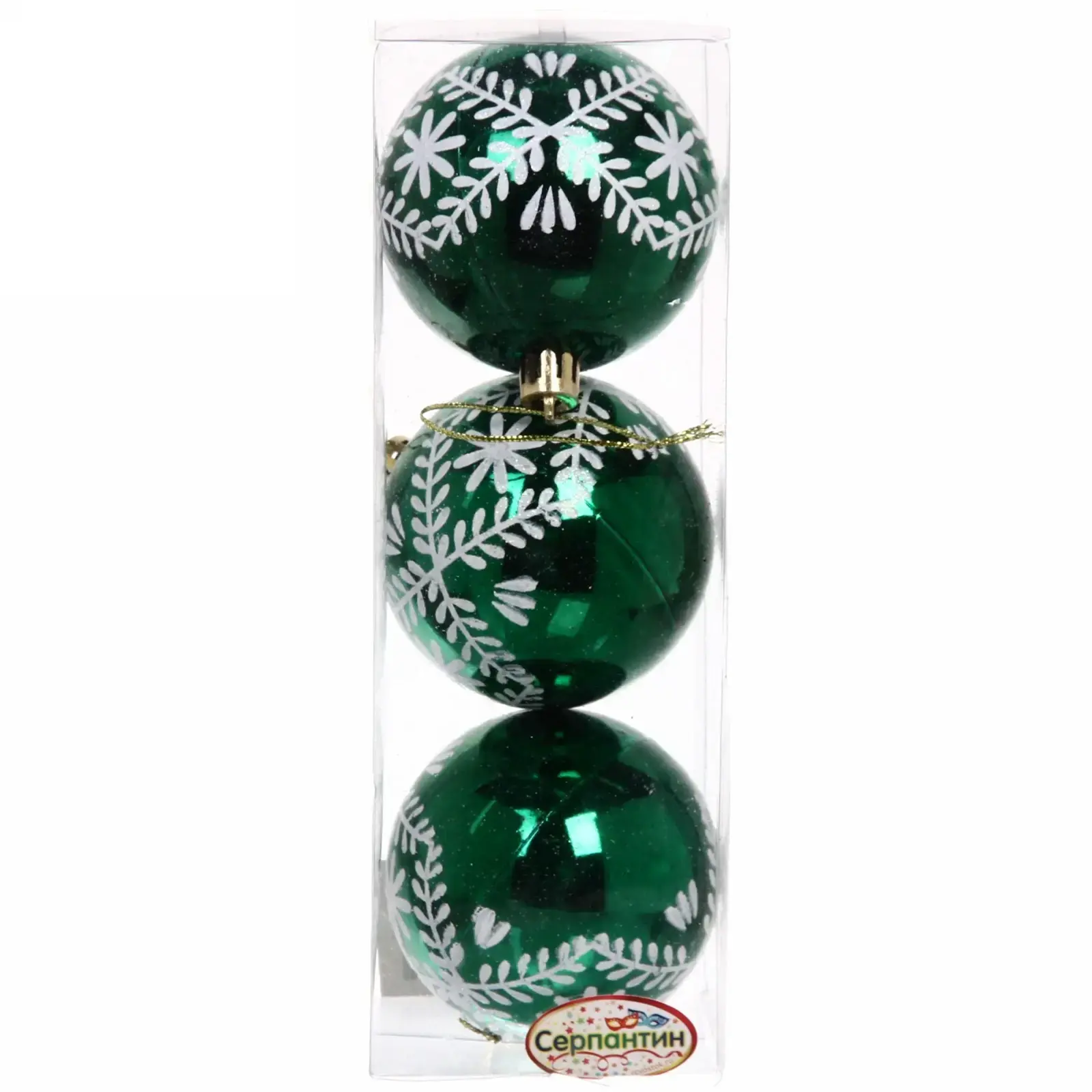 Эти новогодние шары станут идеальным дополнением к вашему праздничному декору. Их яркий зеленый цвет и изысканный белый узор в виде цветочных мотивов добавят атмосферу уюта и радости в ваш дом. Каждый шар имеет блестящую поверхность, что придаёт им особый шарм и делает их заметными на фоне новогодней ели.