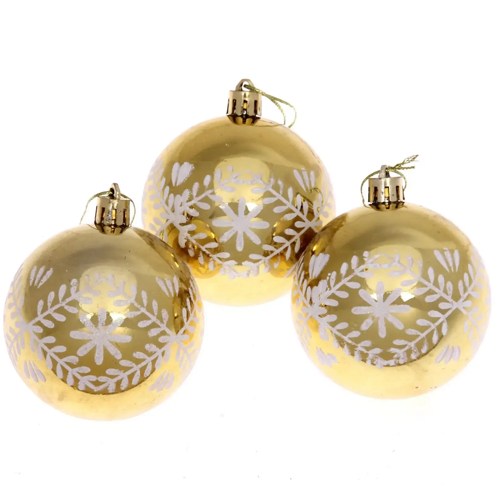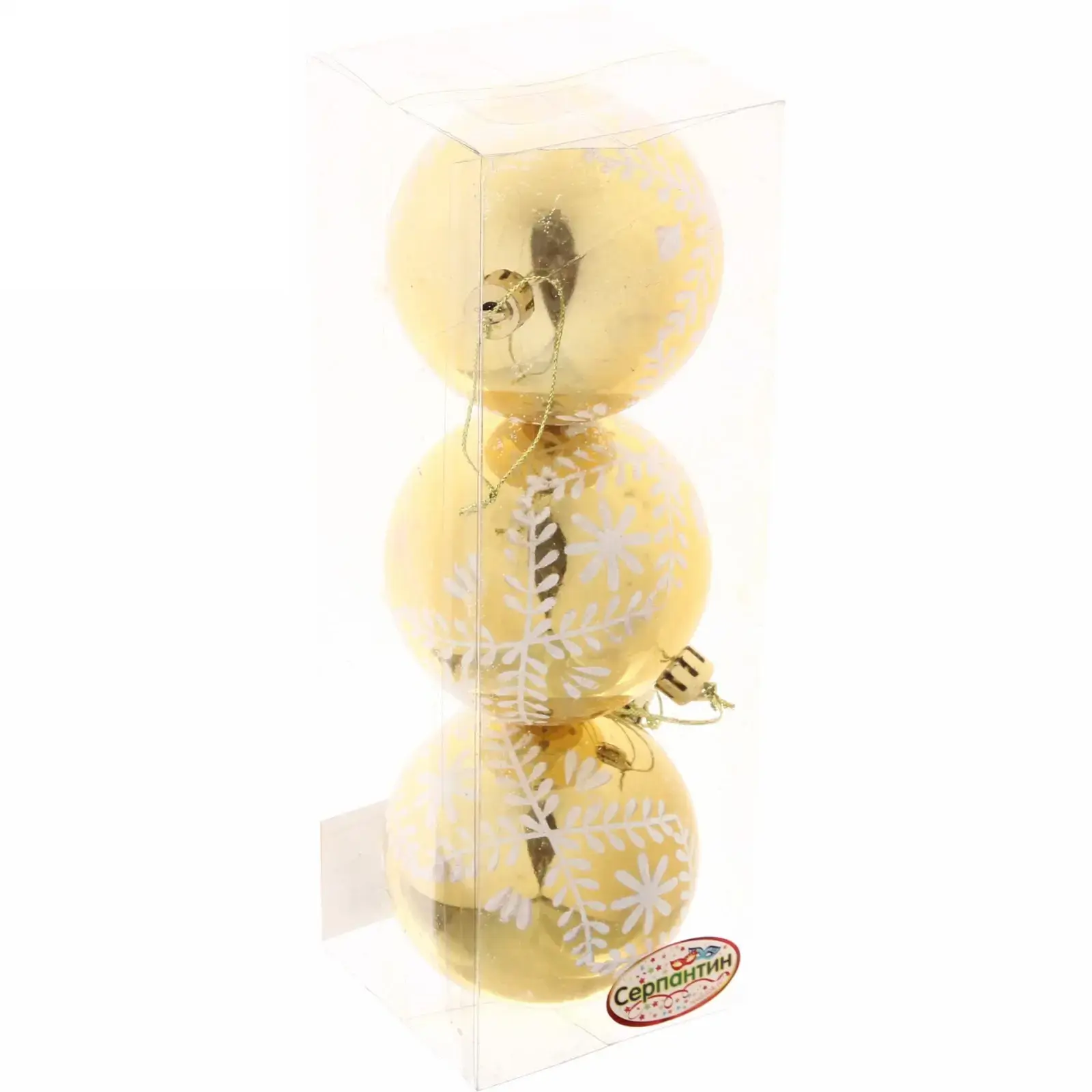 Погрузитесь в атмосферу праздника с набором новогодних шаров «Хвойные веточки». Эти шары, выполненные в золотом цвете с белыми узорами, добавят изысканности и уюта вашему новогоднему декору. Каждый шар диаметром 7 см станет ярким акцентом на вашей елке, создавая неповторимую атмосферу праздника.