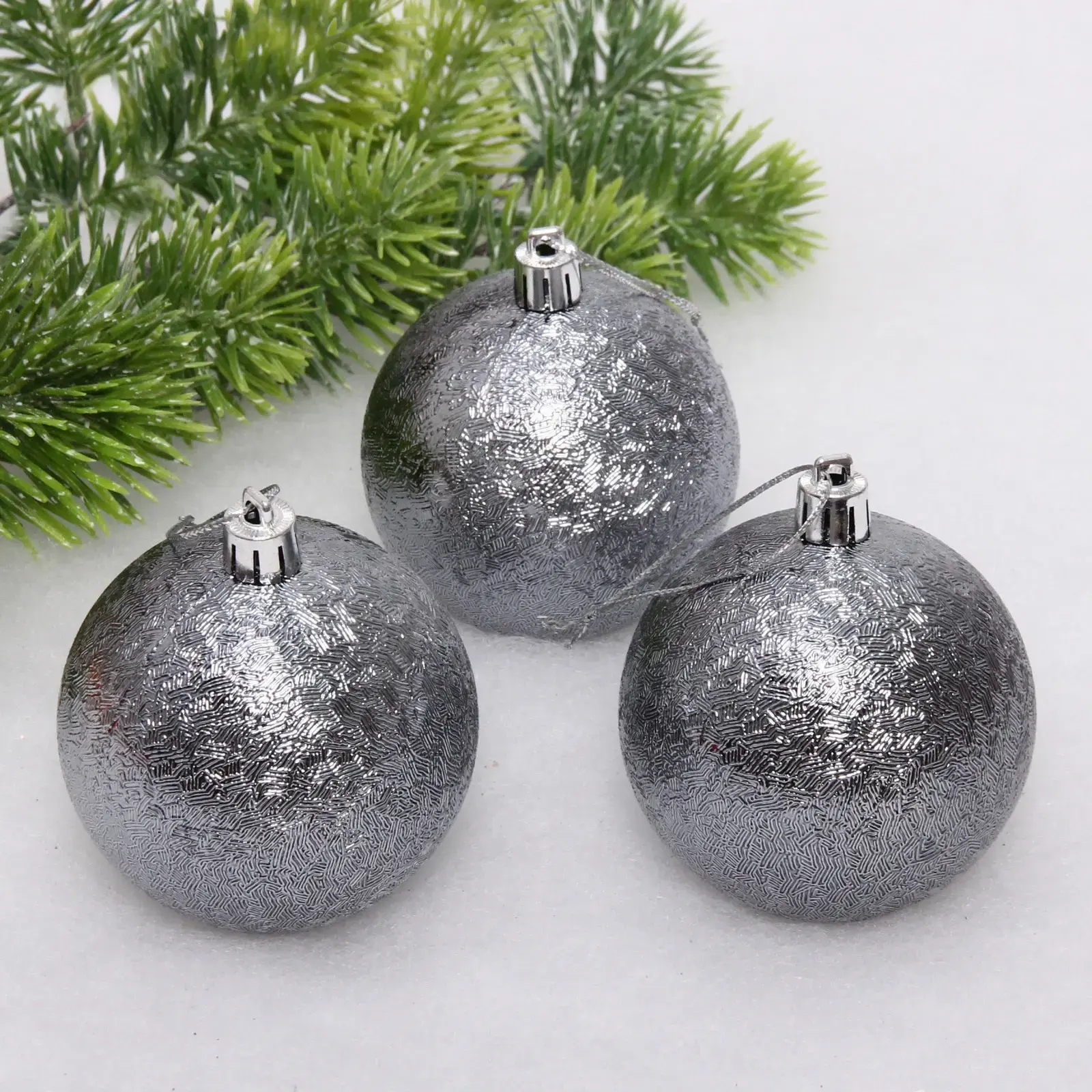 Шары легко подвешиваются благодаря металлическим петлям, что делает их удобными в использовании. Они идеально подходят для украшения как домашних елок, так и для создания праздничного настроения в офисах или на мероприятиях. Набор из трех шаров позволяет вам разнообразить оформление, комбинируя их с другими украшениями.