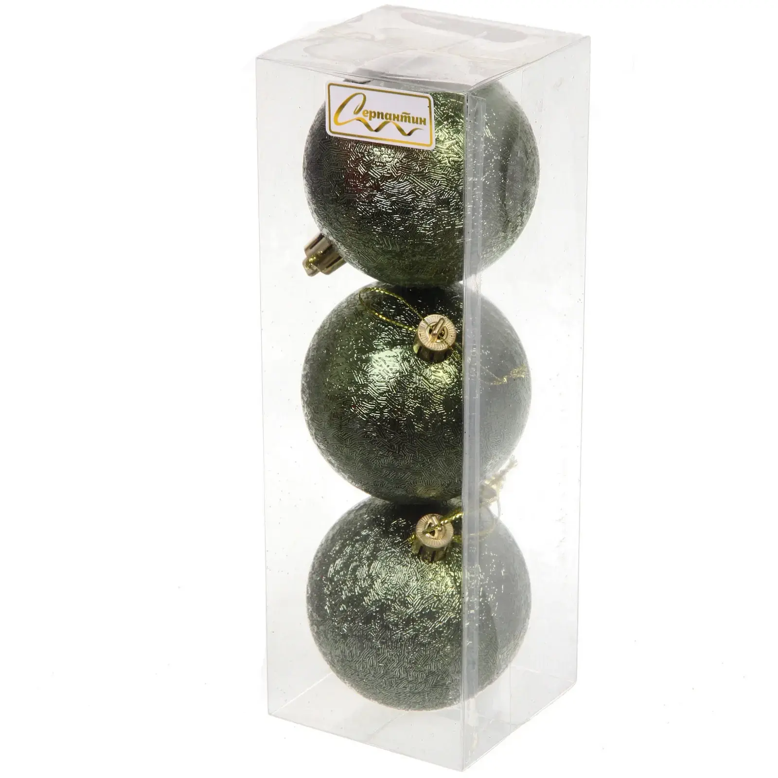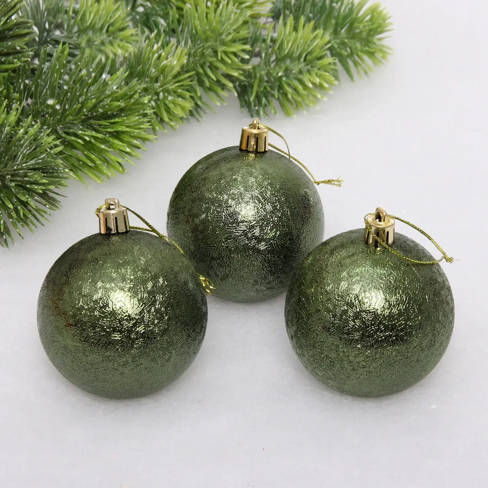 Шары идеально подходят для украшения новогодней елки, а также могут использоваться для декорирования праздничного стола или интерьера. Благодаря золотистым петлям для подвешивания, их легко разместить в любом месте. Набор состоит из трех шаров, что позволяет создать гармоничное сочетание при оформлении.
