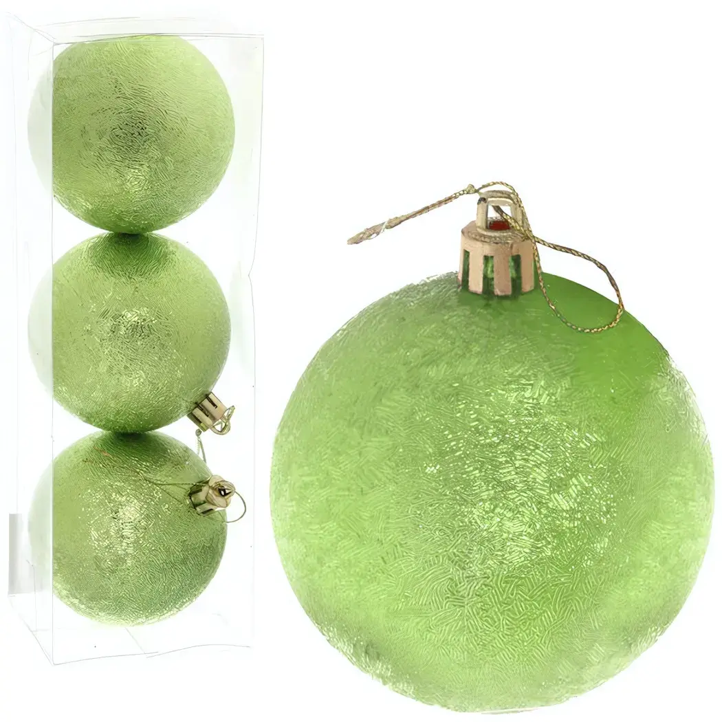 Создайте неповторимую атмосферу волшебства и уюта с набором из трех стильных новогодних шаров. Их салатовый цвет и текстурированная поверхность добавят изысканности вашей елке или праздничному интерьеру.