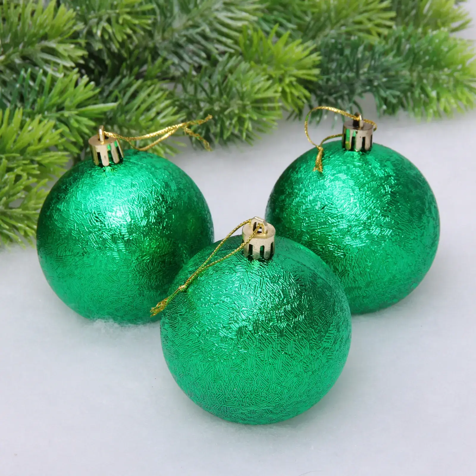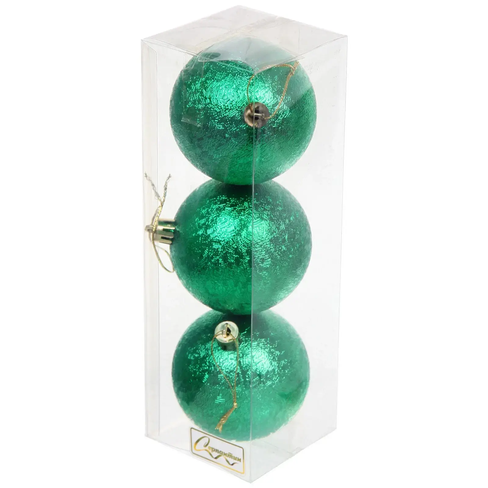Новогодние шары 7см (набор 3шт) «Мягкий блеск», зеленый, пластик, для елки и декорирования