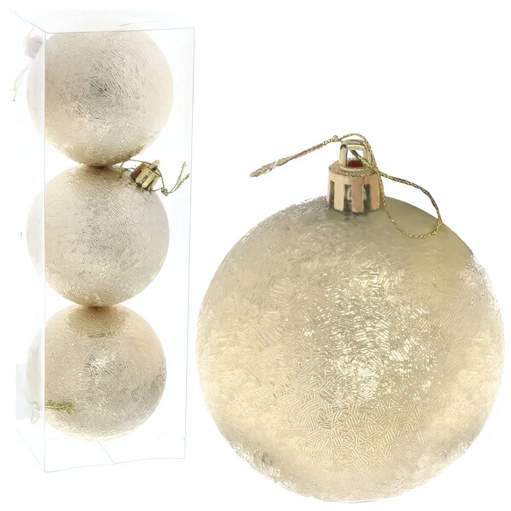 Три изысканных шарика 7 см с «мягким блеском» мгновенно превратят любую ёлку, офисный стол или витрину в волшебный уголок, где каждый луч света играет на золотистом сиянии.