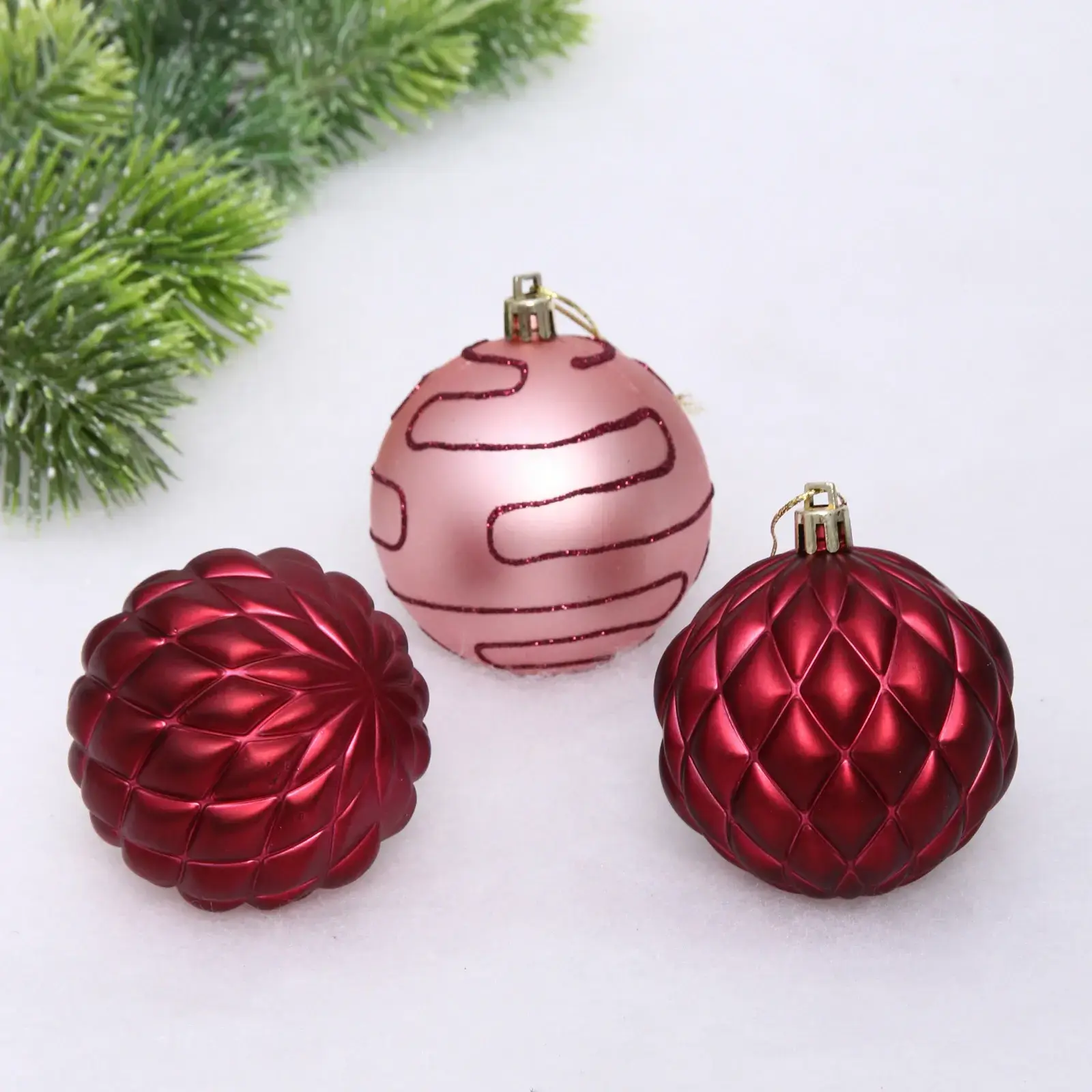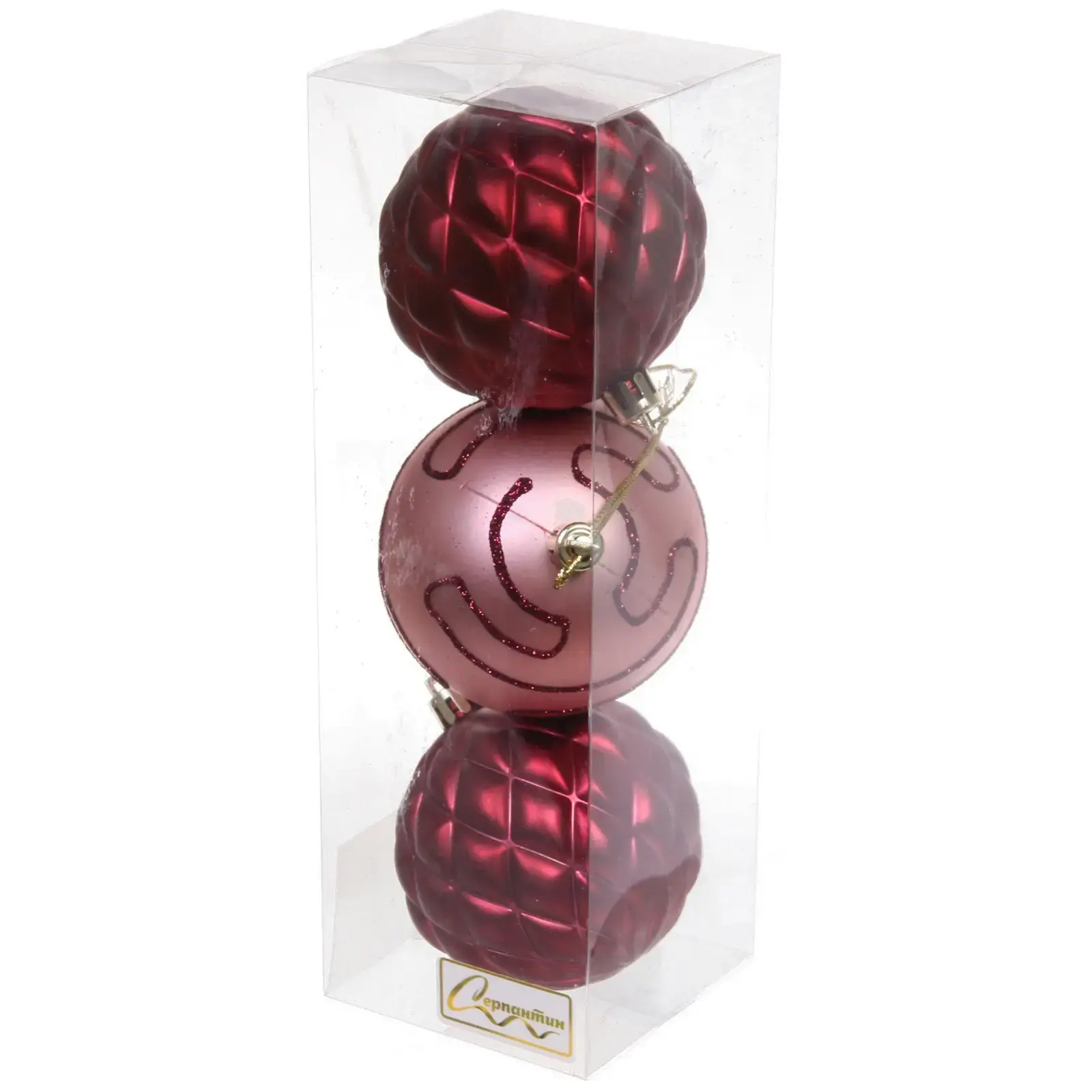 Каждый шар в наборе имеет стандартный размер 7 см и выполнен из качественного пластика, что делает их легкими и безопасными для использования. Нежные розово-золотые и насыщенные рубиновые цвета прекрасно сочетаются друг с другом, создавая эффектный визуальный акцент. Упаковка из прозрачного пластика позволяет увидеть содержимое и удобно хранить шары после праздников.