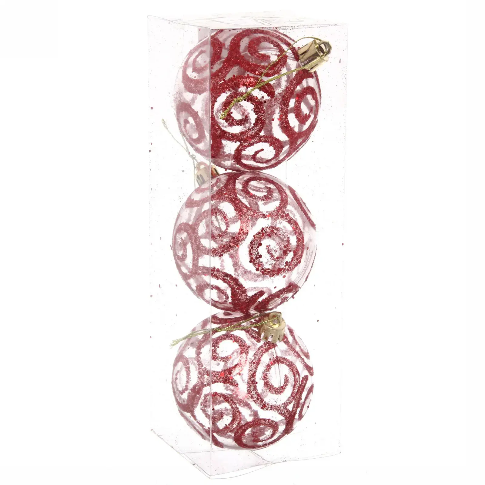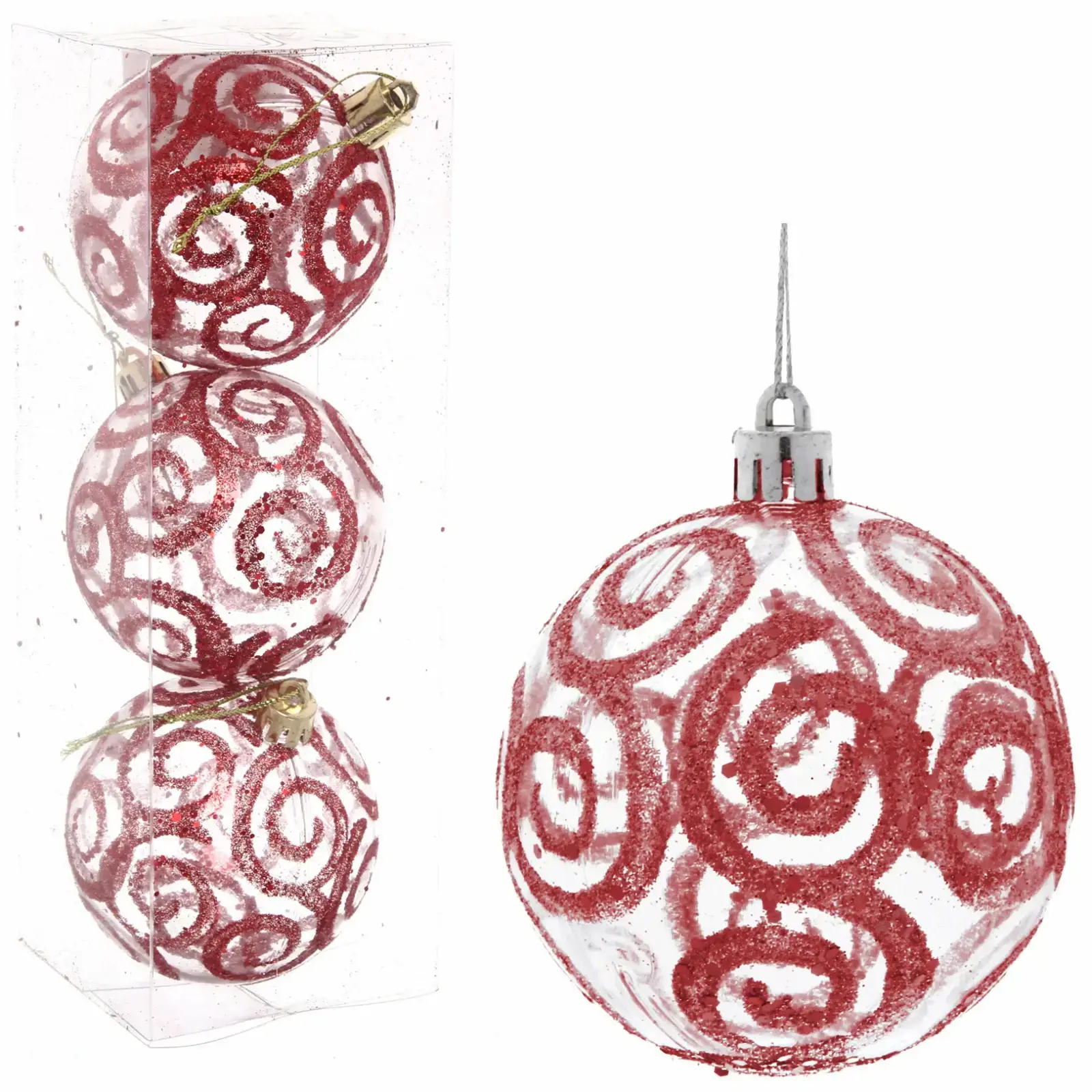 Новогодние шары 7см (набор 3шт) «Зимние узоры», красный, пластик, для елки и декорирования