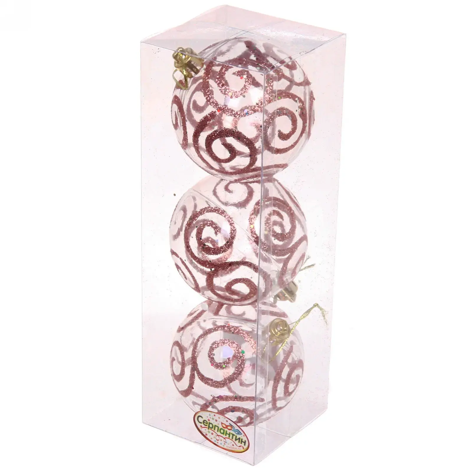 Новогодние шары 7см (набор 3шт) «Зимние узоры», розовое золото, пластик, для елки и декорирования
