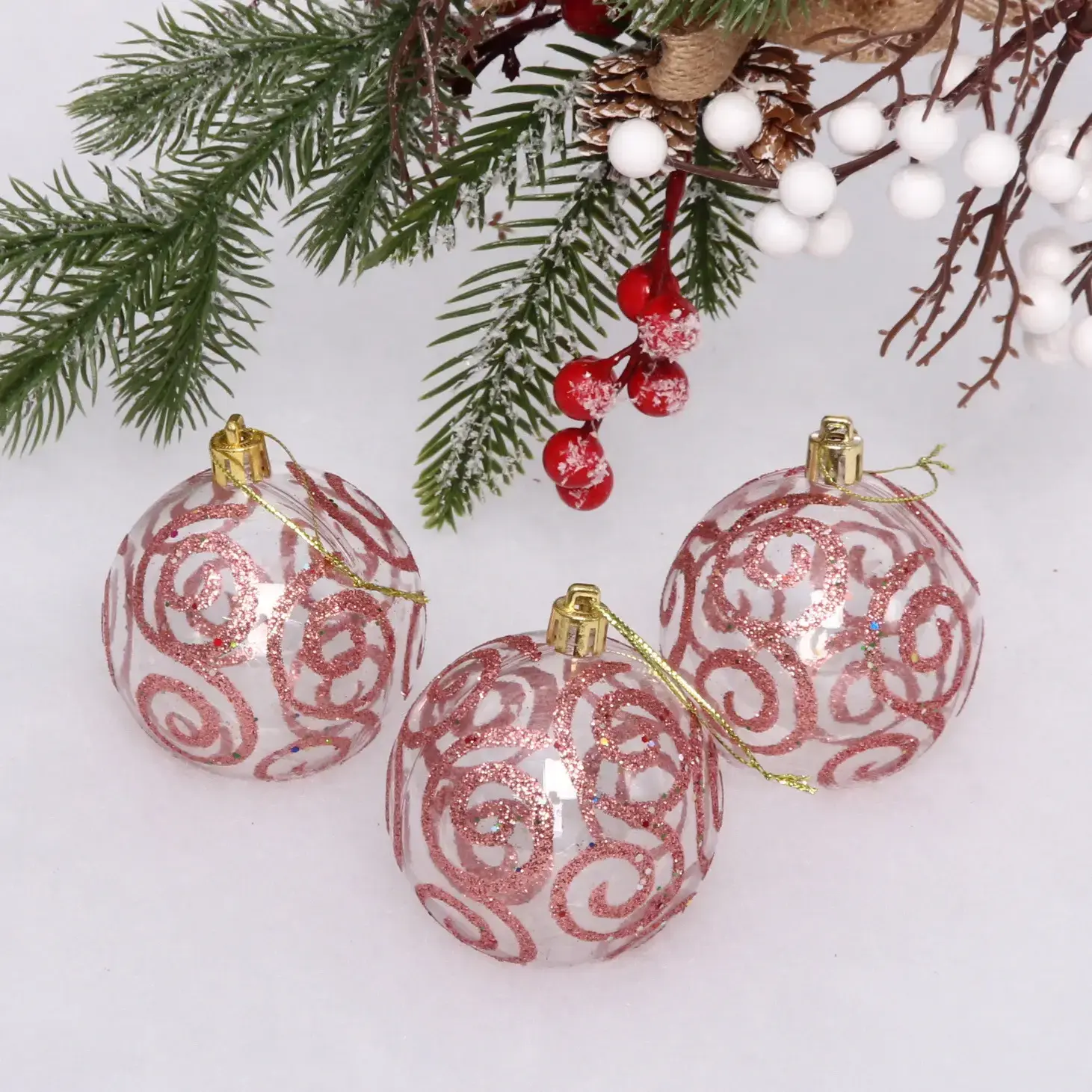 Элегантные новогодние шары "Зимние узоры" привнесут в ваш интерьер нотку роскоши и праздничного настроения. Их прозрачное покрытие с розовыми сверкающими узорами станет идеальным дополнением к новогодней ёлке.