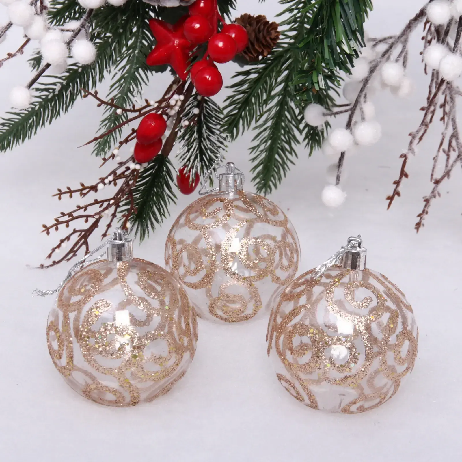 Элегантные новогодние шары 'Зимние узоры' добавят вашей елке неповторимое сияние и торжественность. Прозрачные шары с изящными золотыми узорами создают эффект мерцания в свете гирлянд.