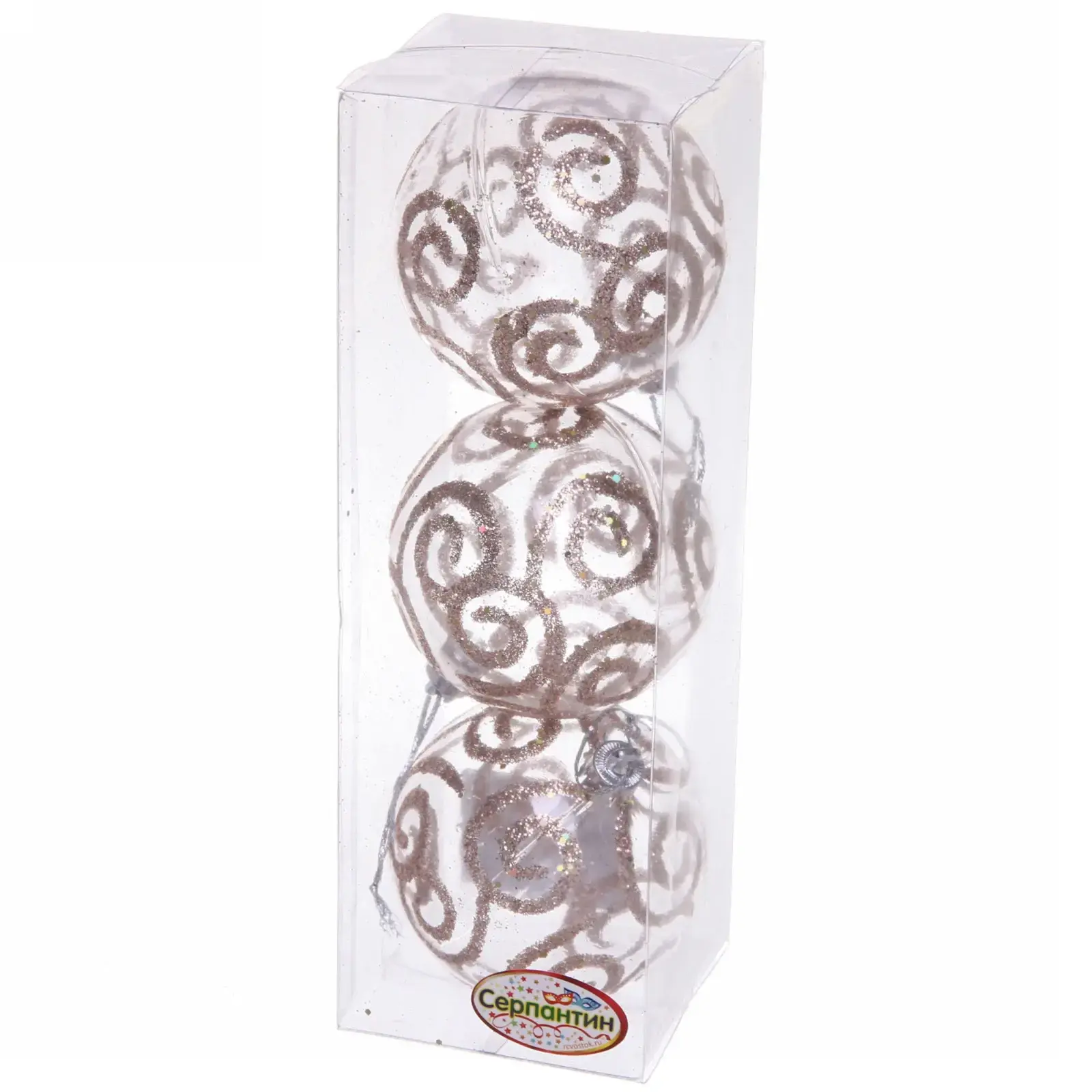 Новогодние шары 7см (набор 3шт) «Зимние узоры», шампань, пластик, для елки и декорирования