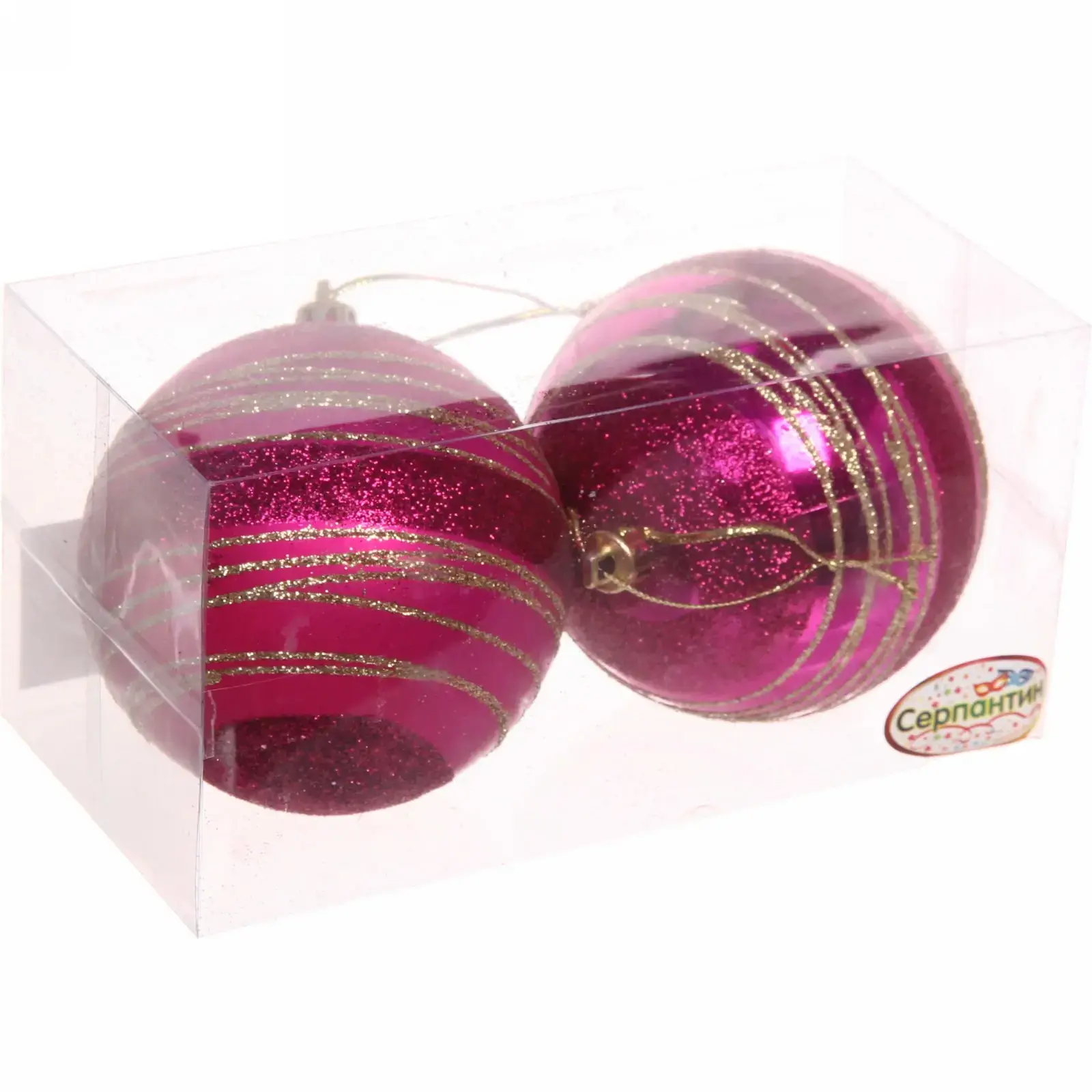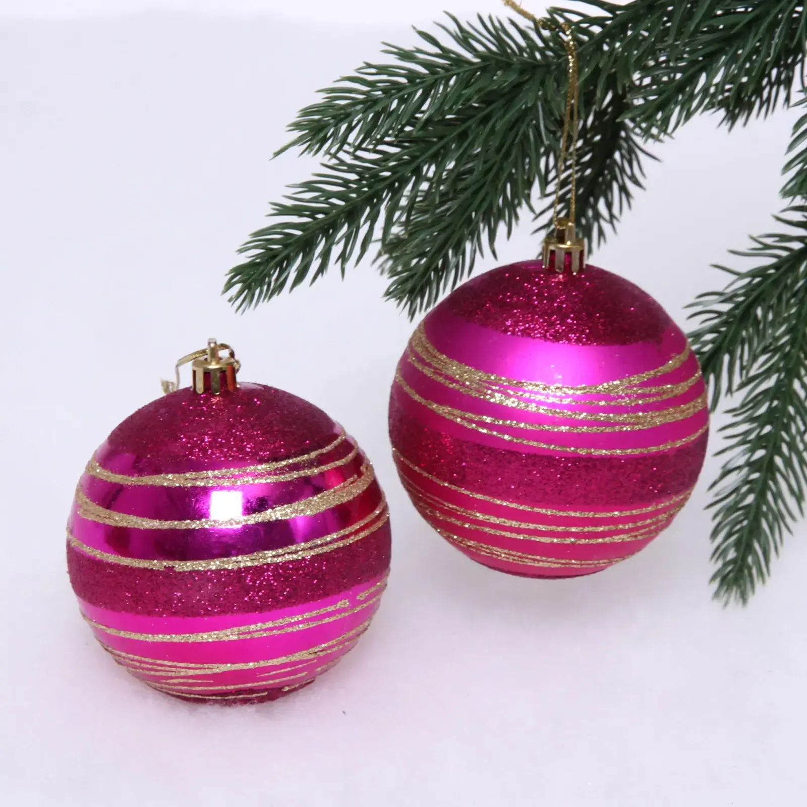 Новогодние шары 8 см (набор 2 шт) «Алмазная россыпь», Фуксия, пластик, для елки и декорирования