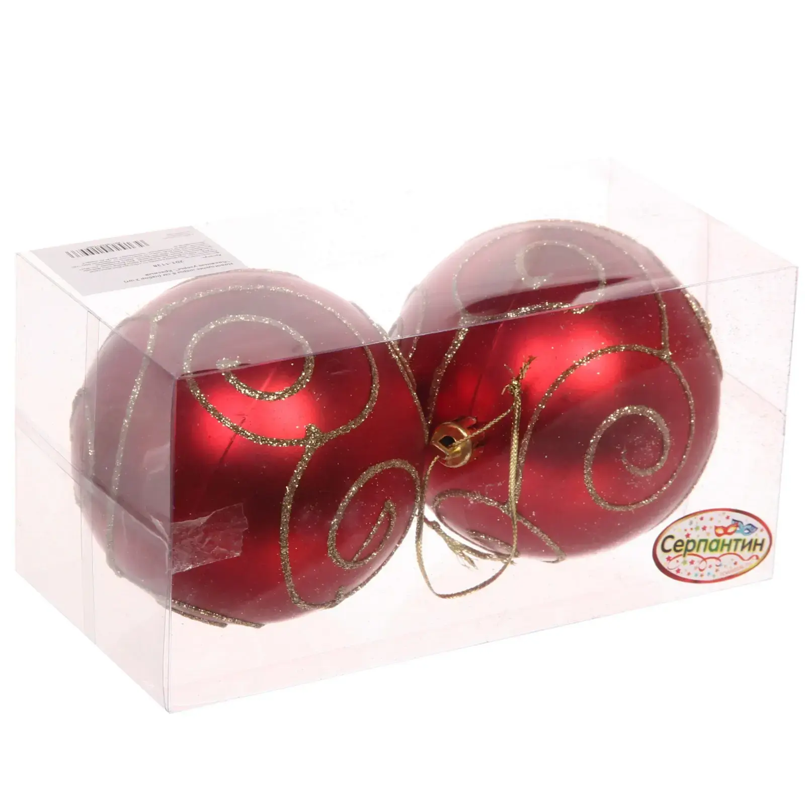 Новогодние шары 8 см (набор 2 шт) «Снежные узоры», Красный, пластик, для елки и декорирования