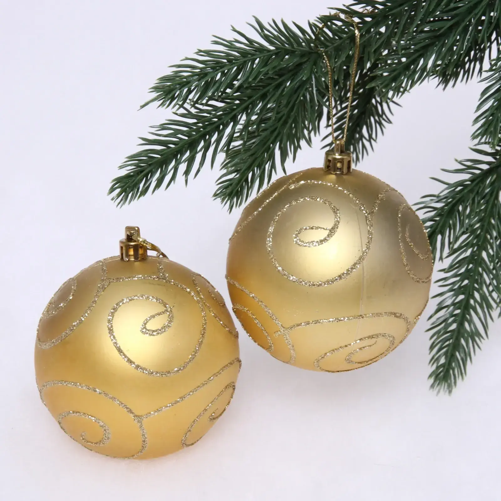 Праздничные новогодние шары 'Снежные узоры' станут изысканным дополнением вашей ёлки. Их золотистый цвет и элегантный дизайн создают неповторимое ощущение волшебства.