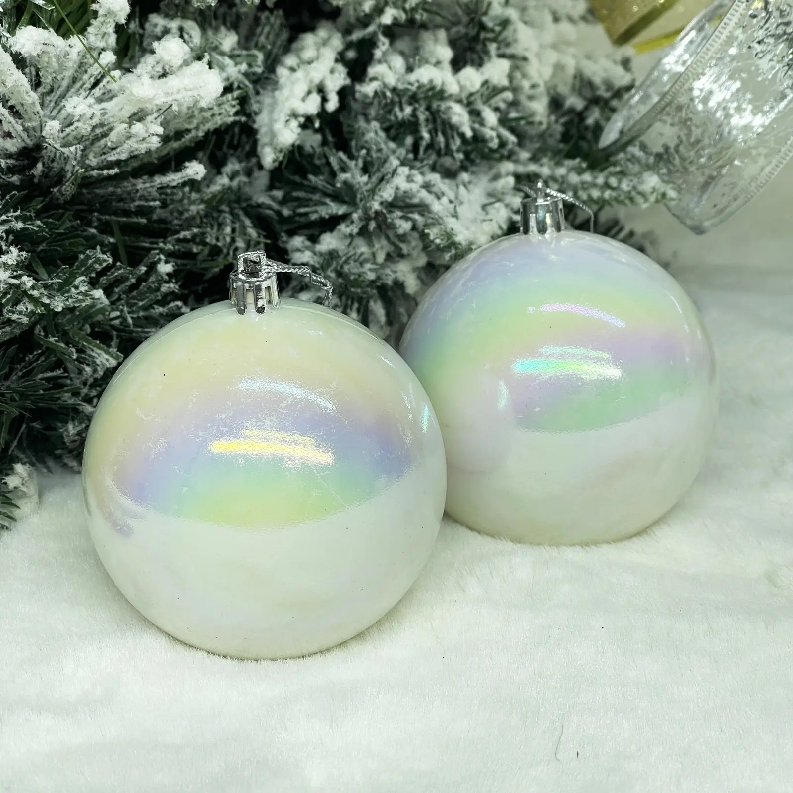 Эти новогодние шары диаметром 8 см из коллекции «Жемчуг» станут ярким акцентом вашей праздничной елки. Их перламутрово-белая поверхность с мягким радужным отливом создает атмосферу зимнего волшебства и гармонично вписывается как в классическое, так и в современное оформление интерьера. Нежные переливы оттенков розового, голубого и зелёного отражают свет гирлянд, придавая особое тепло и уют.