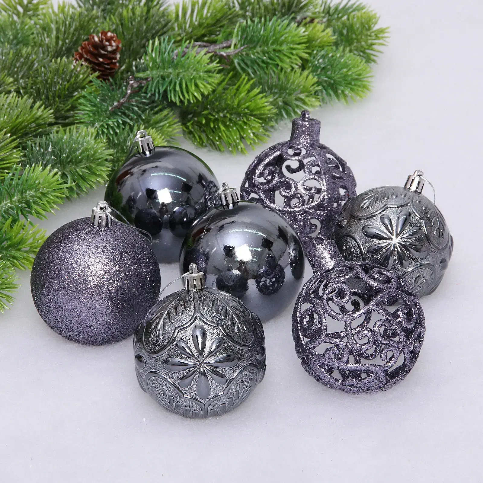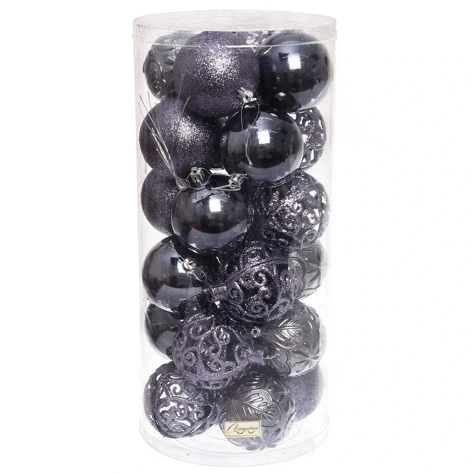 Элегантный набор из 24 новогодних шаров станет идеальной основой для украшения вашей елки в современном стиле. Графитово-фиолетовая цветовая гамма добавит изысканности вашему праздничному декору.