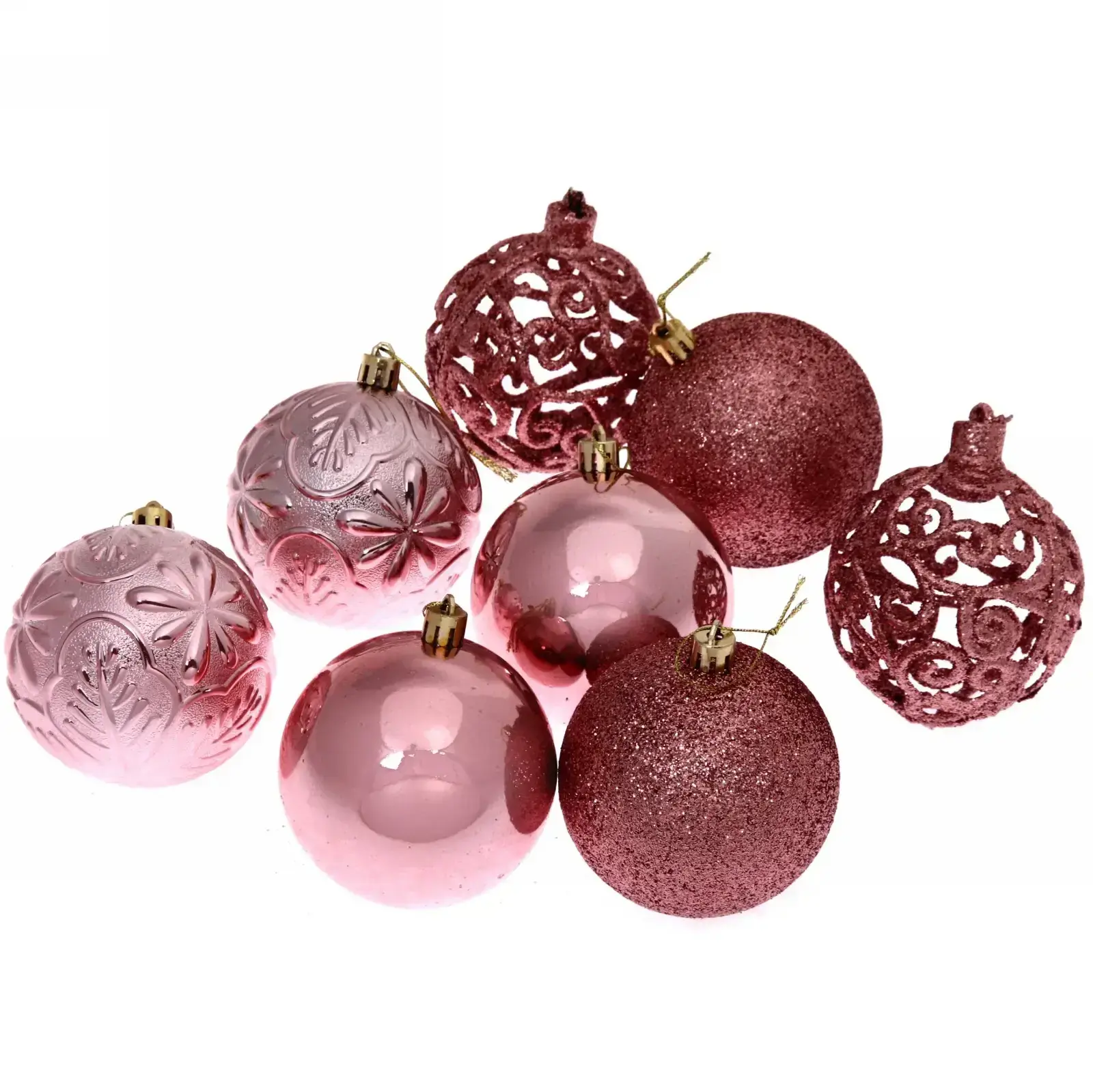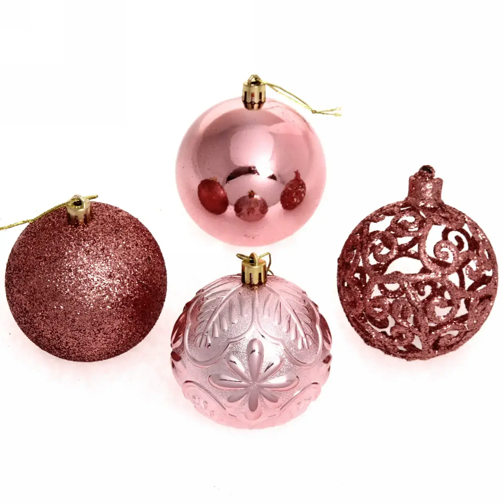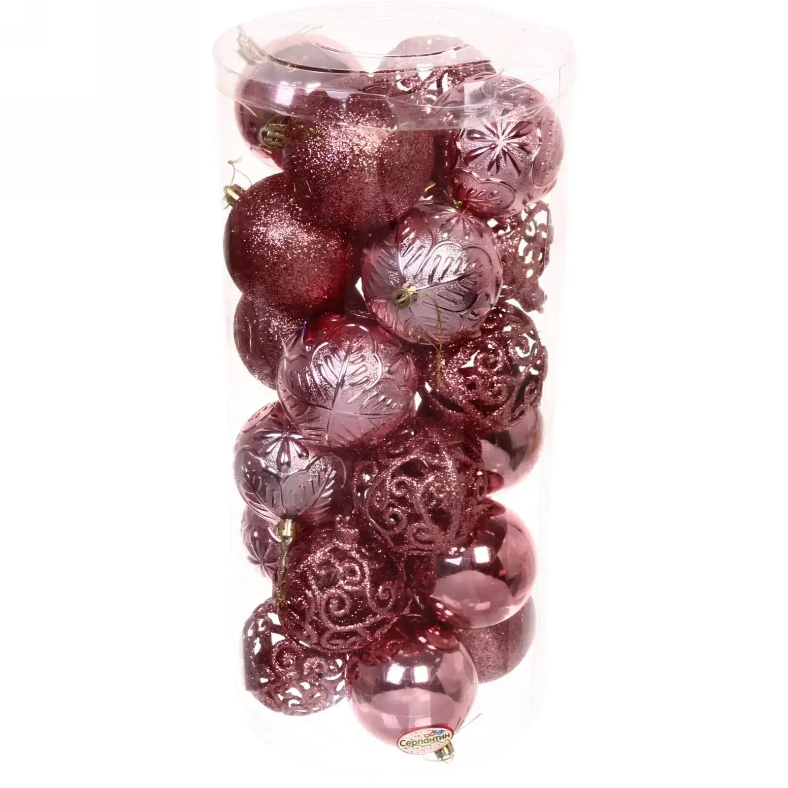 Новогодние шары 8 см (набор 24 шт) «Фактурный микс», розовое золото, пластик, для елки и декорирования