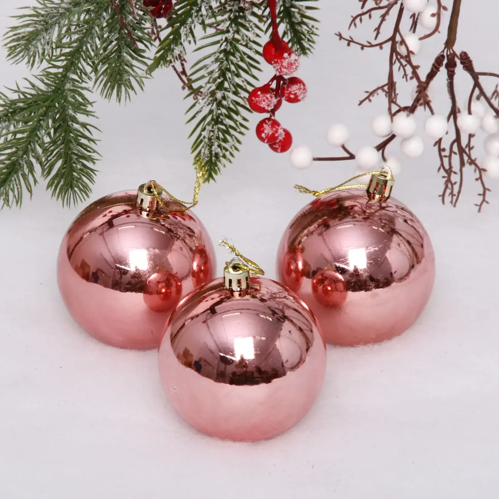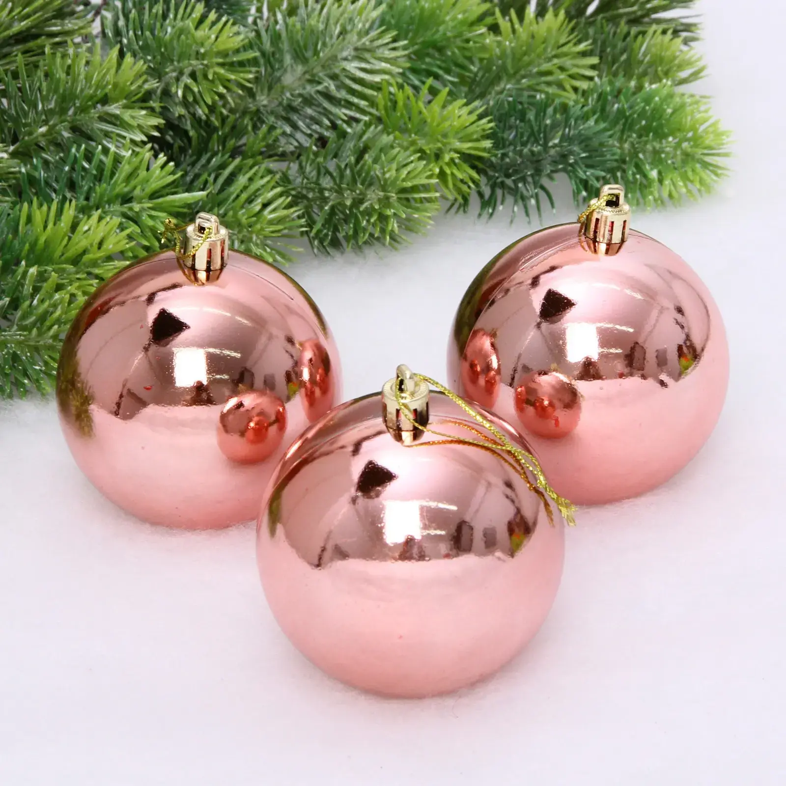 Позвольте вашему дому засиять тёплым и торжественным настроением с этим элегантным елочным шаром в благородном оттенке розового золота. Глянцевая поверхность отражает огоньки гирлянд, наполняя комнату особой атмосферой уюта и праздника. Каждый шар дополнен изящной золотистой петлей для удобного подвешивания и создан так, чтобы стать гармоничным элементом как на домашней, так и на офисной ёлке.