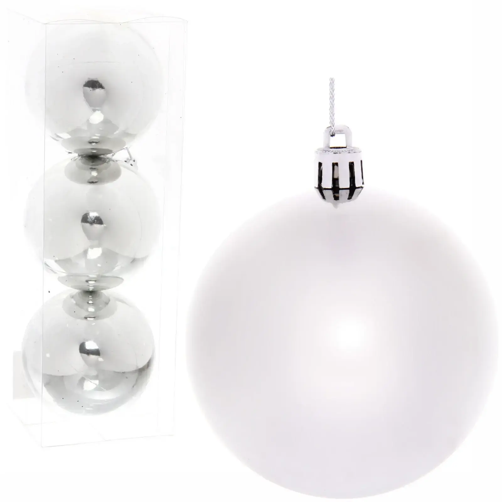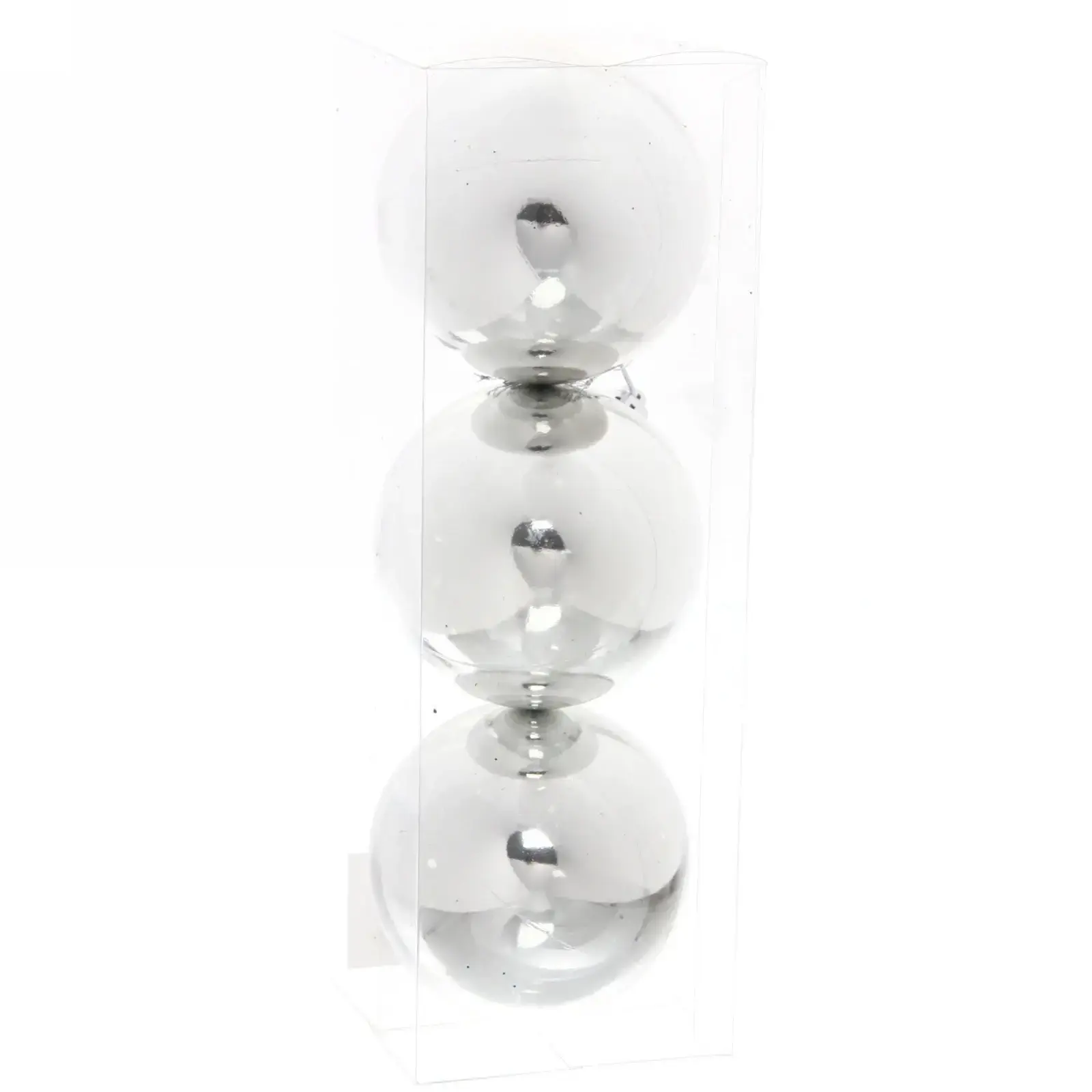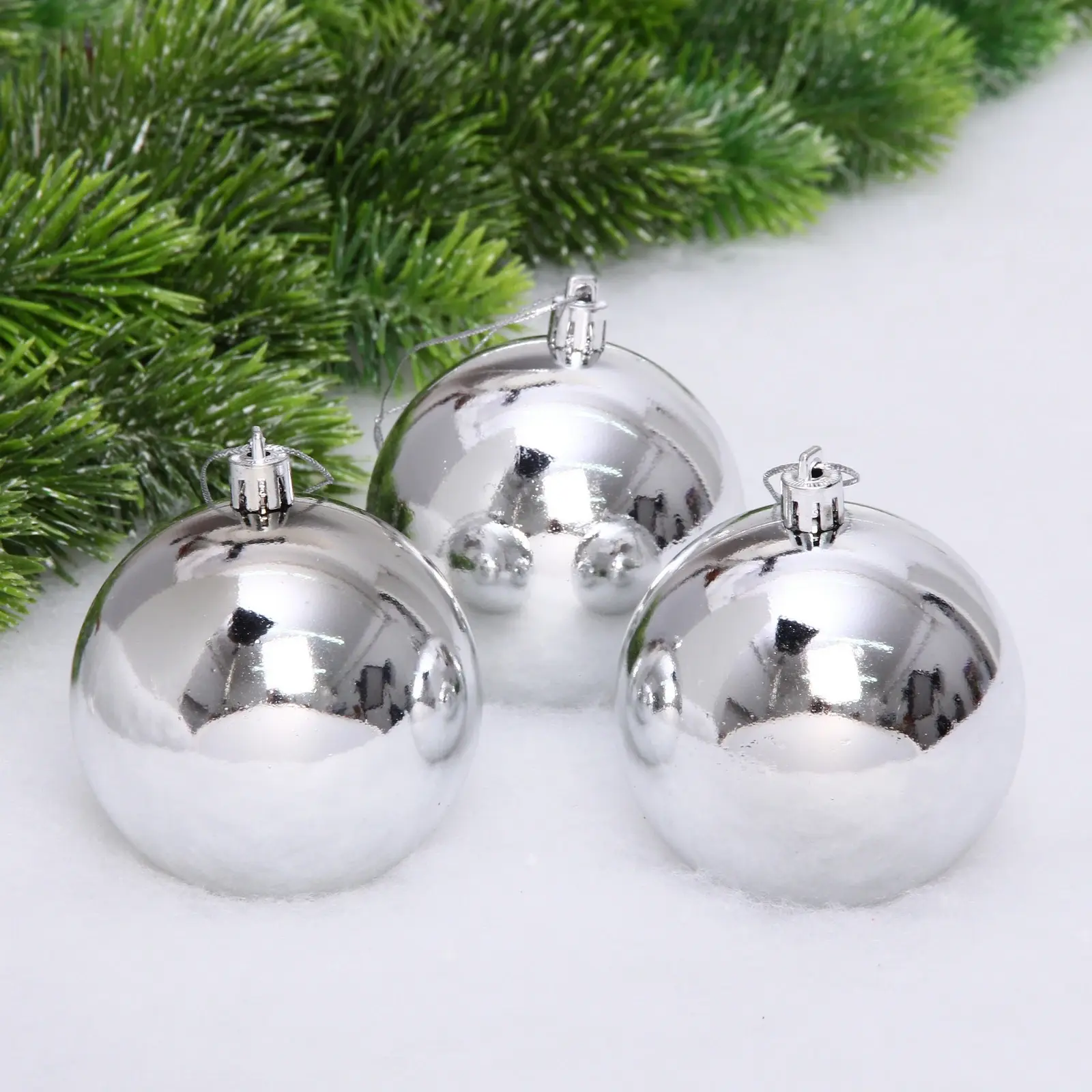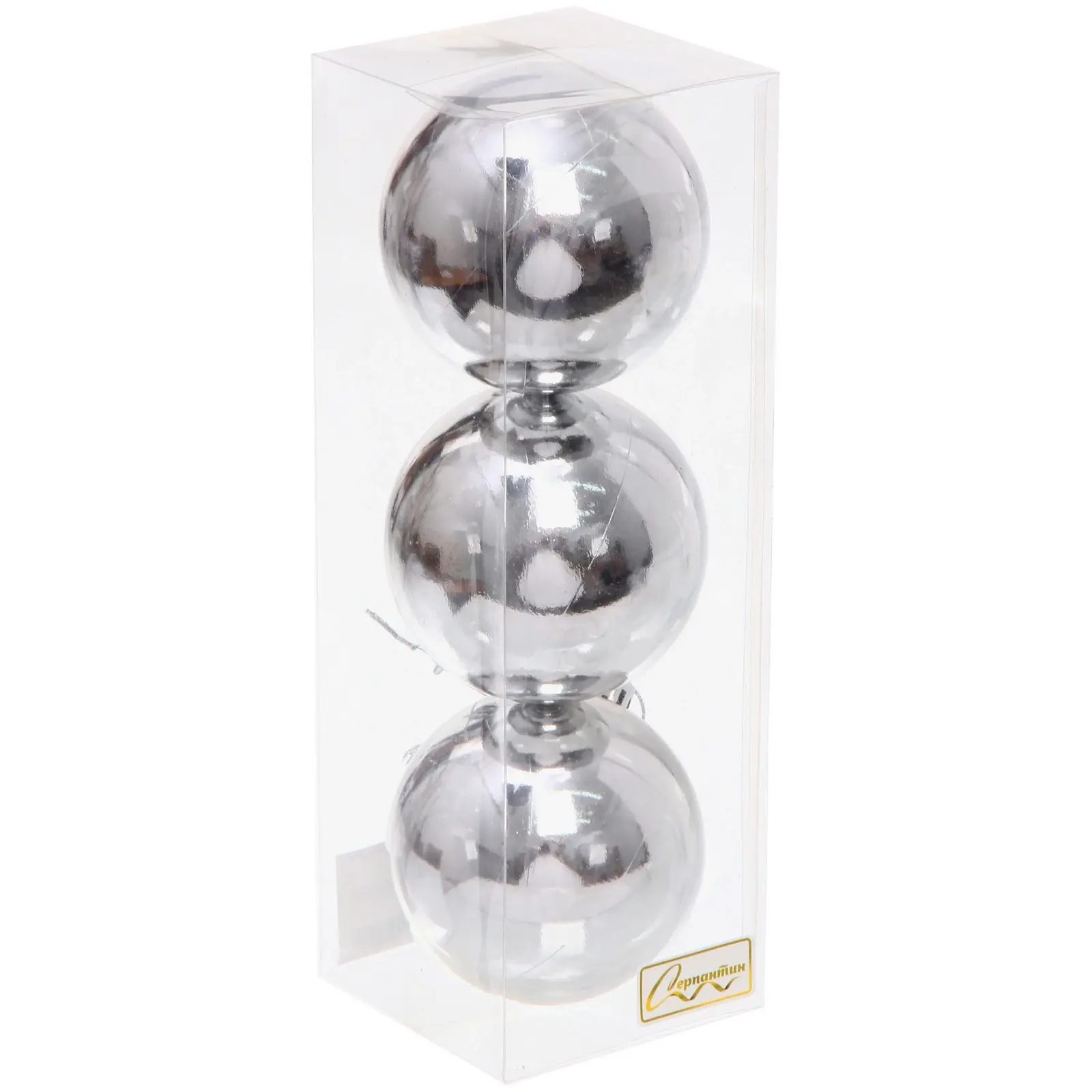 Каждый шар имеет диаметр 8 см и выполнен в серебристом цвете, что позволяет им гармонично сочетаться с другими новогодними украшениями. Упаковка содержит три шара, что дает вам возможность создать разнообразные композиции. Не упустите шанс сделать ваш Новый год незабываемым с нашими новогодними шарами!