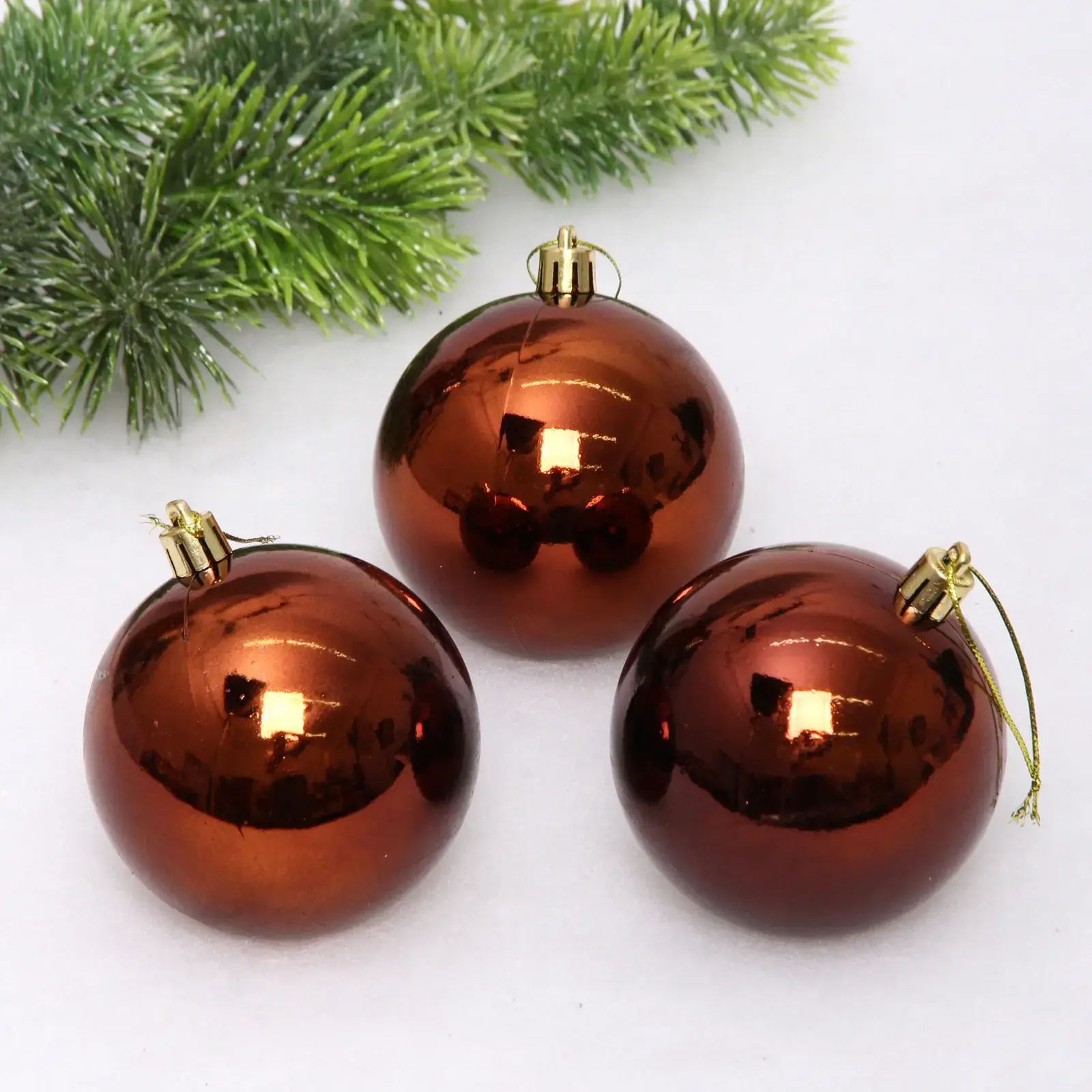 Новогодние шары — это не просто украшения, это символы волшебства и радости, которые наполняют наш дом теплом и уютом. Набор из трех шоколадных шаров диаметром 8 см с глянцевой поверхностью станет идеальным дополнением к вашему новогоднему декору. Эти шары не только красивы, но и практичны, ведь они легко вписываются в любой интерьер, будь то строгий офис или уютная домашняя елка.
