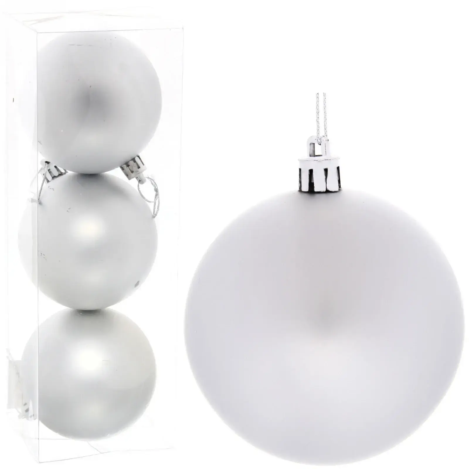 Новогодние шары — это не просто украшения, это символы волшебства и радости, которые наполняют ваш дом атмосферой праздника. Набор из трех матовых серебристых шаров диаметром 8 см станет идеальным дополнением к вашей новогодней елке или праздничному декору. Эти шары не только красивы, но и практичны, так как их матовая поверхность придаёт изысканный вид, а прочный пластиковый материал обеспечивает долговечность и безопасность.