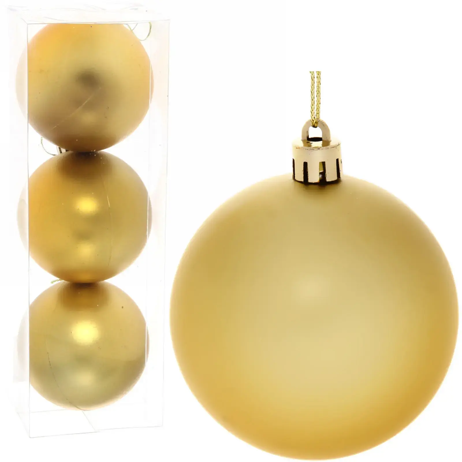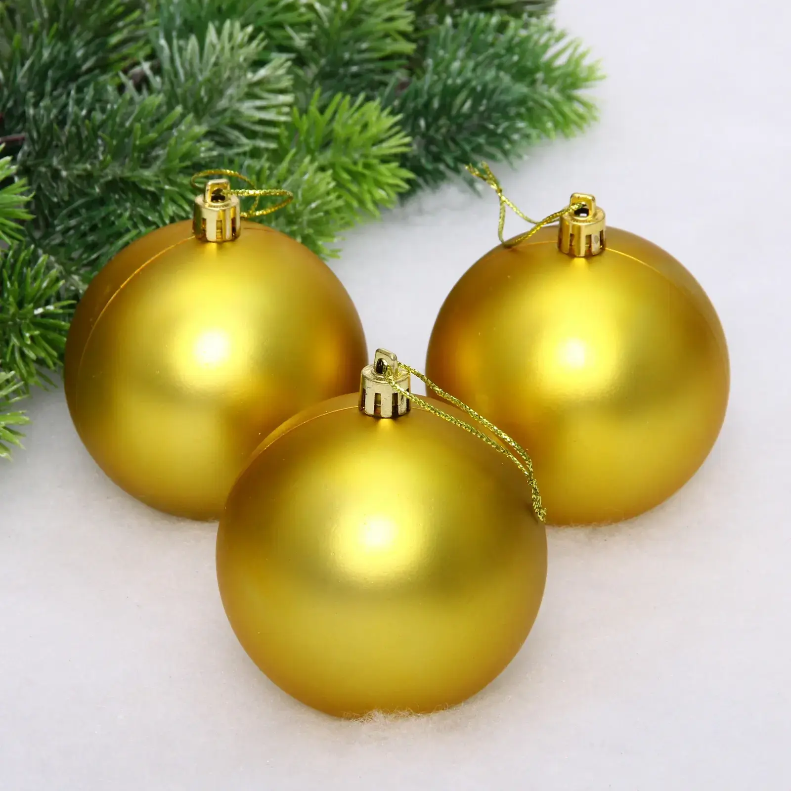Новогодние шары — это не просто украшения, это символы волшебства и радости, которые наполняют наш дом теплом и уютом. Набор из трех матовых золотых шаров диаметром 8 см станет идеальным дополнением к вашему новогоднему декору. Эти шары не только красивы, но и практичны, ведь они легко вписываются в любой стиль оформления, будь то классика или современный минимализм.