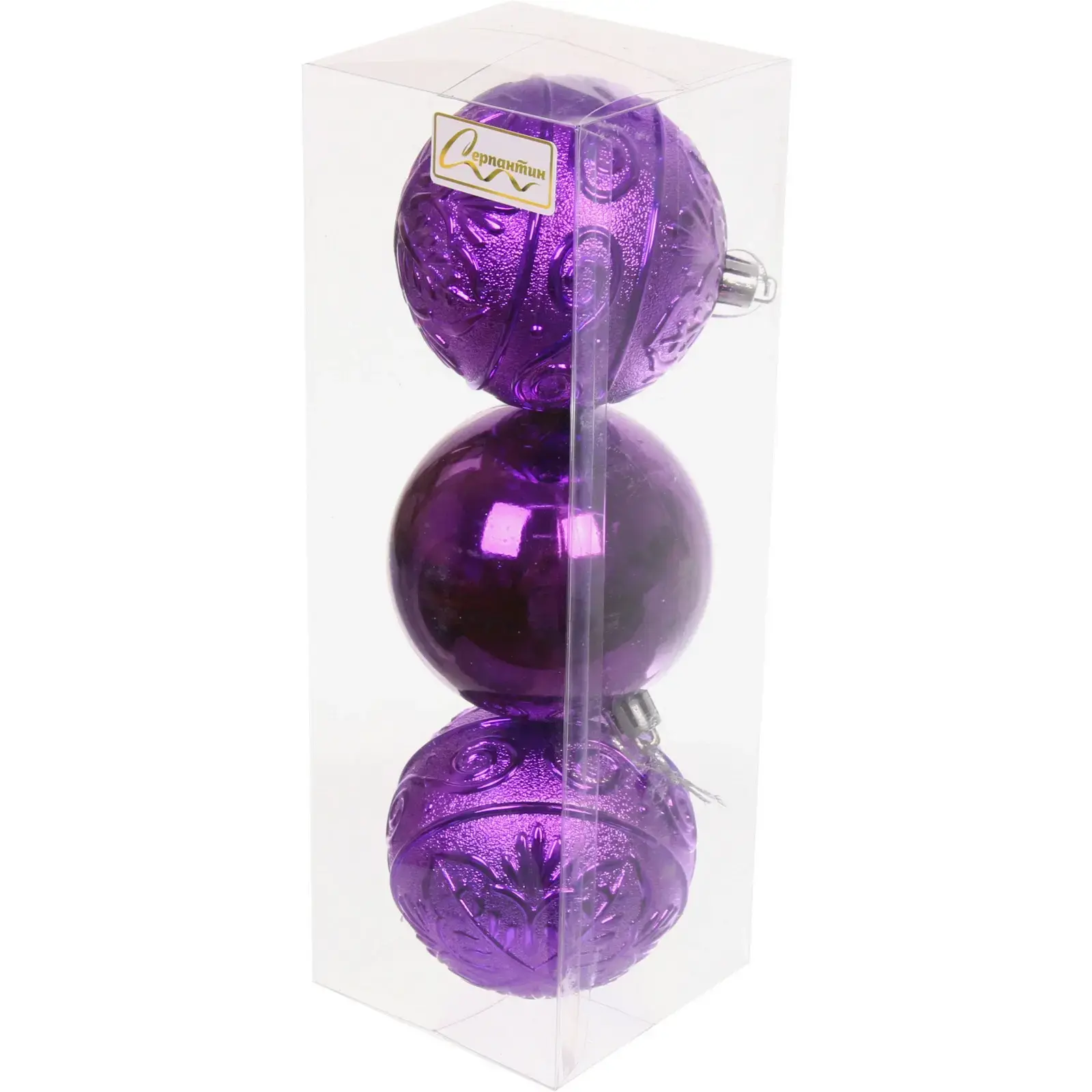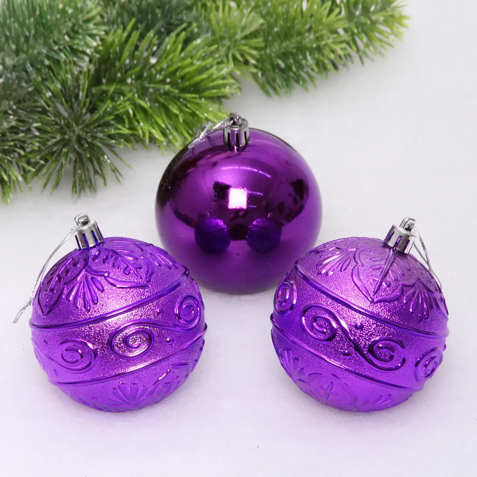 Эти фиолетовые новогодние шары станут идеальным украшением для вашей елки, принося атмосферу праздника и радости. Они выполнены из прочного пластика, что обеспечивает долговечность и надежность в использовании. Каждый шар имеет уникальный дизайн: один гладкий и блестящий, а два других украшены рельефными узорами, что добавляет разнообразия и стиля в ваше новогоднее оформление.