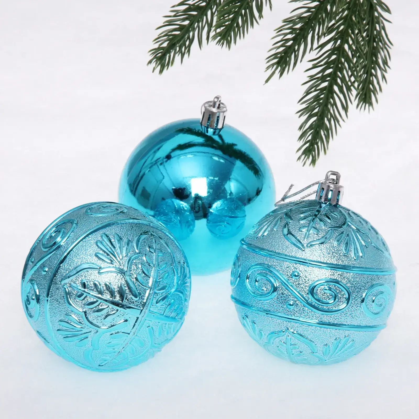 Шары подходят для декорирования как домашних елок, так и офисных пространств. Их можно комбинировать с другими украшениями, создавая уникальные композиции. Благодаря разнообразным фактурам — гладкой, рельефной и блестящей — вы сможете легко создать стильный и гармоничный декор.