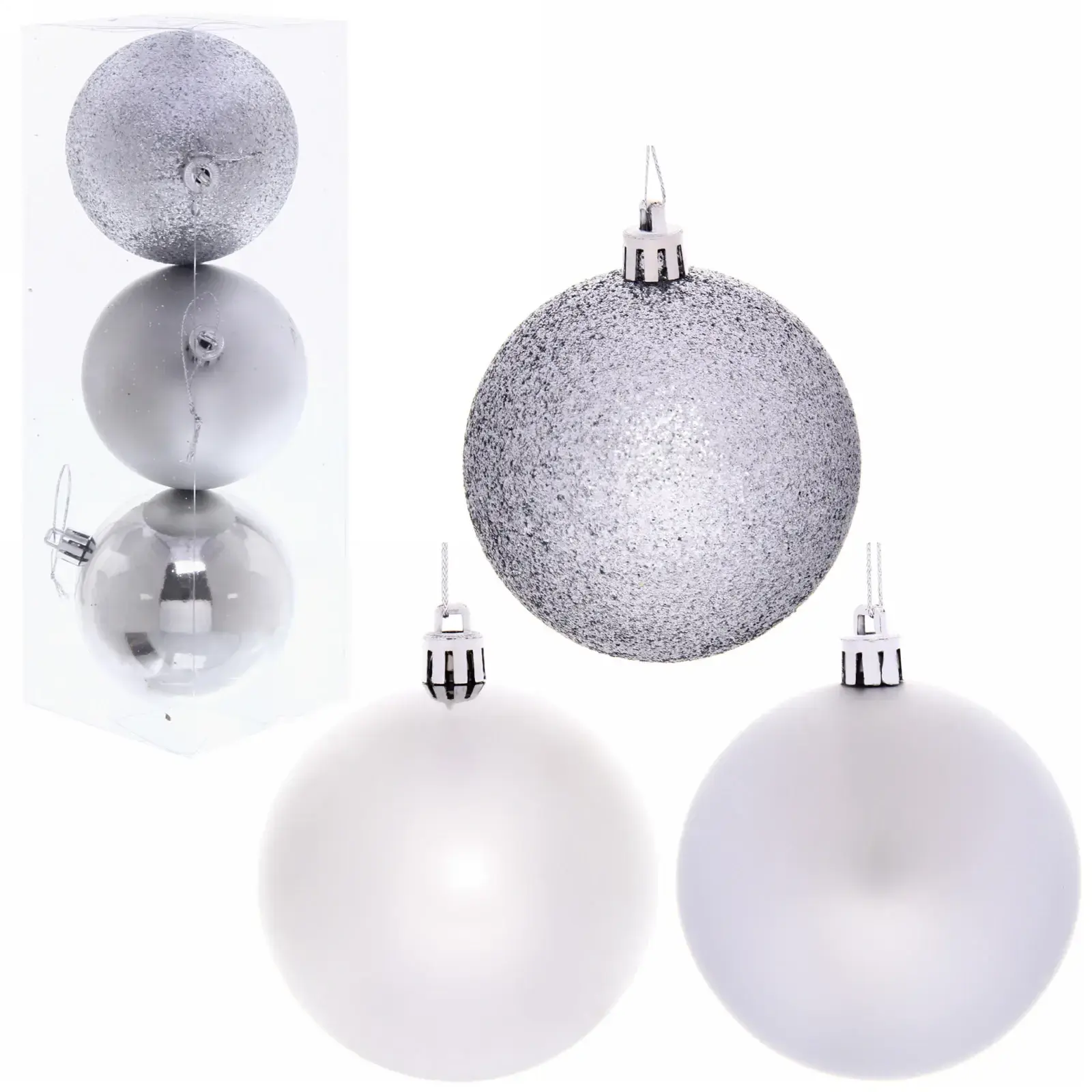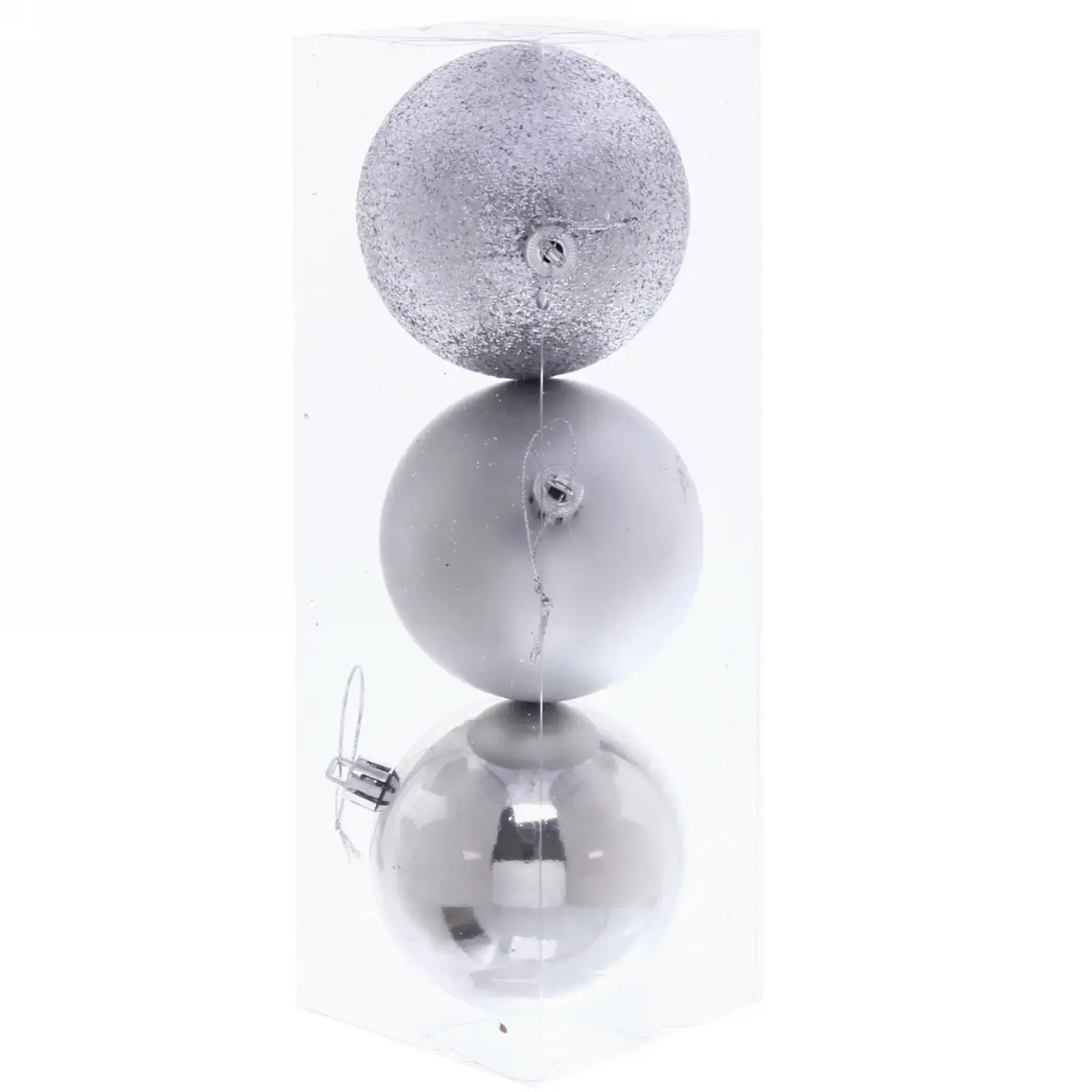 Новогодние шары 8 см (набор 3 шт) «Микс фактур», серебро, пластик, для елки и декорирования