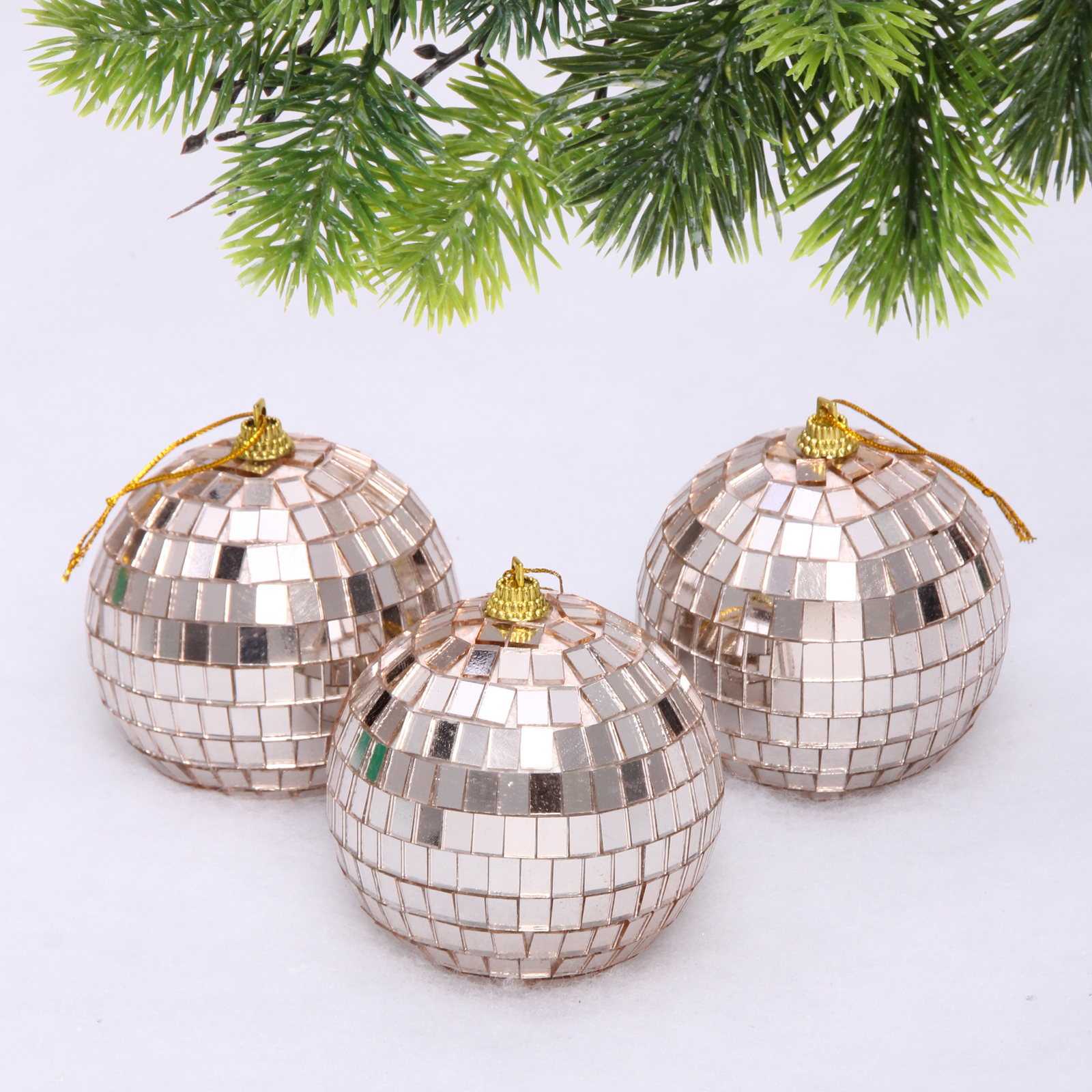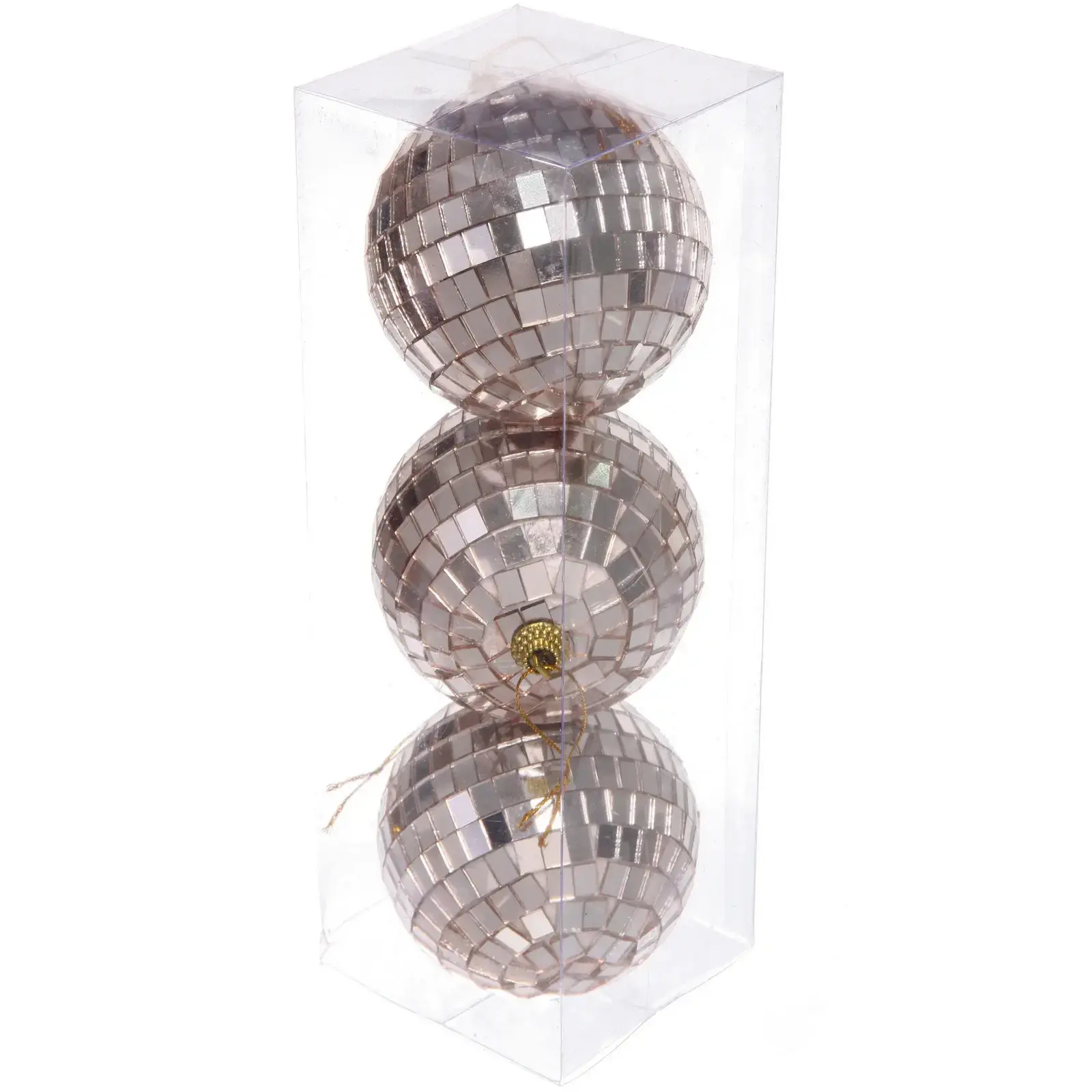 Эти новогодние шары диаметром 8 см в цвете розового золота добавят волшебства и блеска в ваш интерьер. Они идеально подходят для украшения ёлки, создавая атмосферу уюта и радости в новогодние праздники. Каждый шар выполнен в стиле «Shining Disco», что придаёт им уникальный и стильный вид.