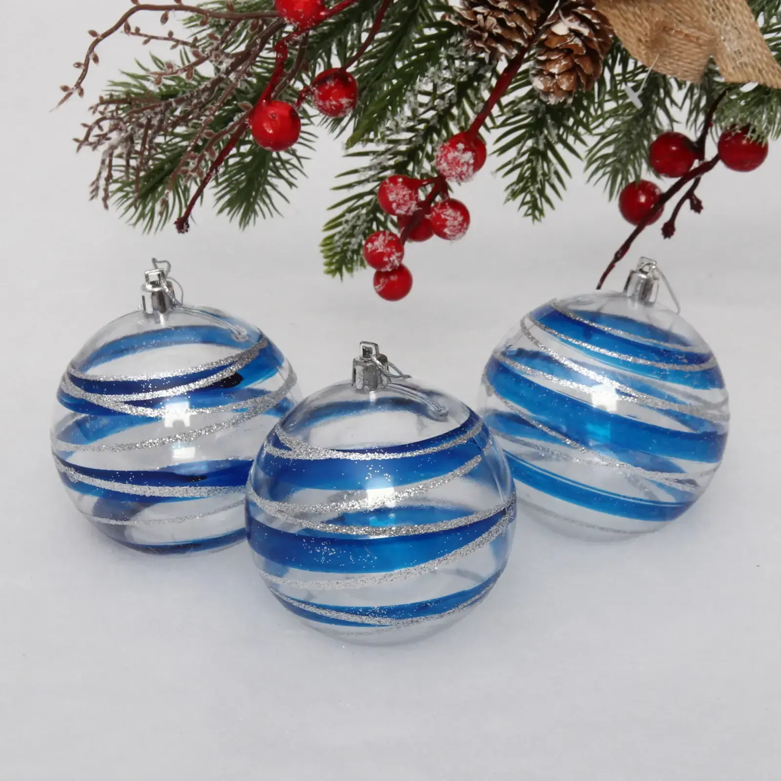 Погрузитесь в атмосферу праздника с набором новогодних шаров диаметром 8 см. Эти шары, выполненные в голубом и серебряном цветах, добавят изысканности и стиля вашему новогоднему декору. Каждый шар украшен спиральными полосами и блестящими элементами, что делает их идеальными для создания праздничного настроения.