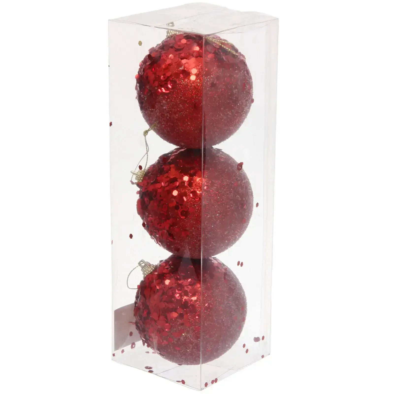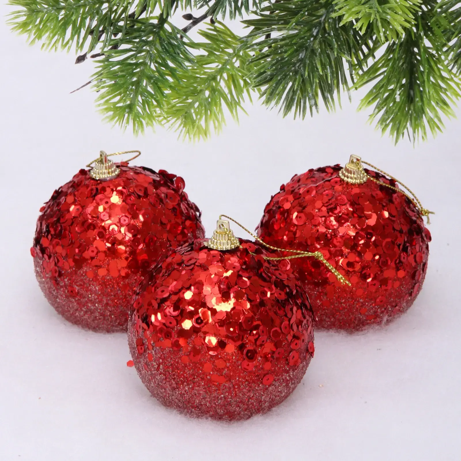Каждый шар имеет диаметр 8 см и выполнен в ярком красном цвете, украшен блестками. В наборе вы получите 3 шара, которые упакованы в прозрачную герметичную упаковку, позволяющую увидеть содержимое. Это делает их отличным подарком для друзей и близких, а также идеальным выбором для создания новогоднего настроения.