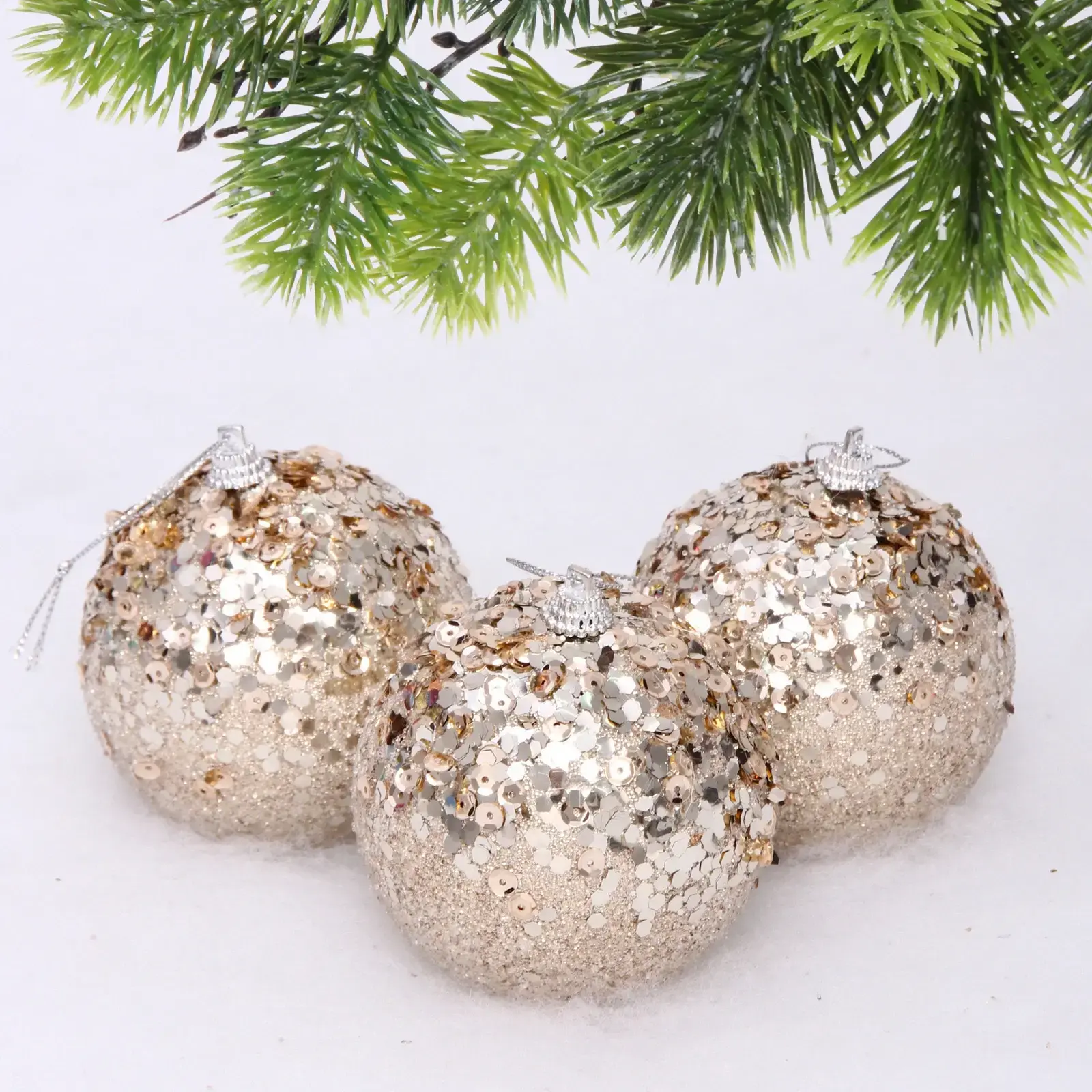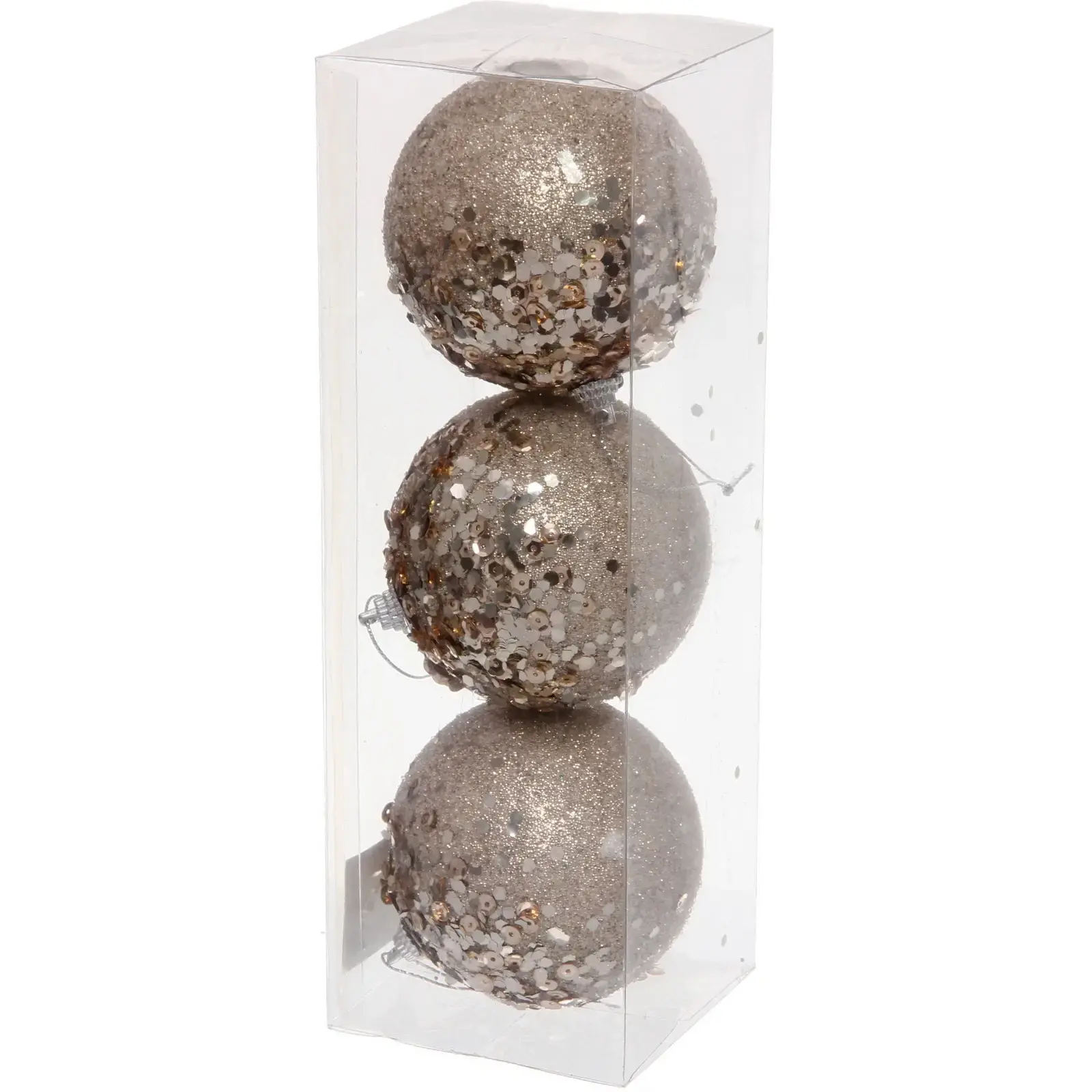 Новогодние шары «GLAME - Блеск» 8 см (набор 3 шт), Шампань, пластик, для елки и декорирования
