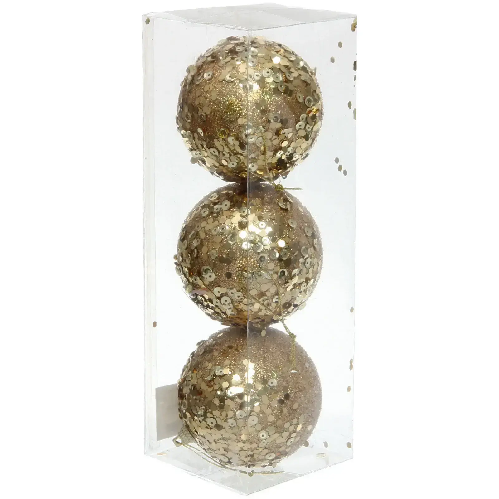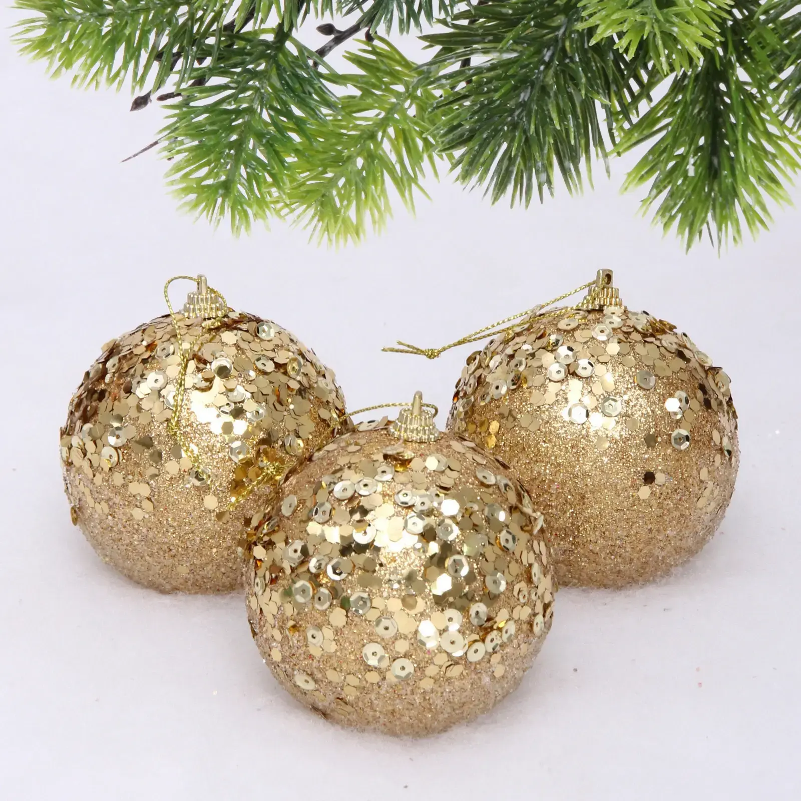 Новогодние шары «GLAME - Блеск» 8 см (набор 3 шт), Золото, пластик, для елки и декорирования