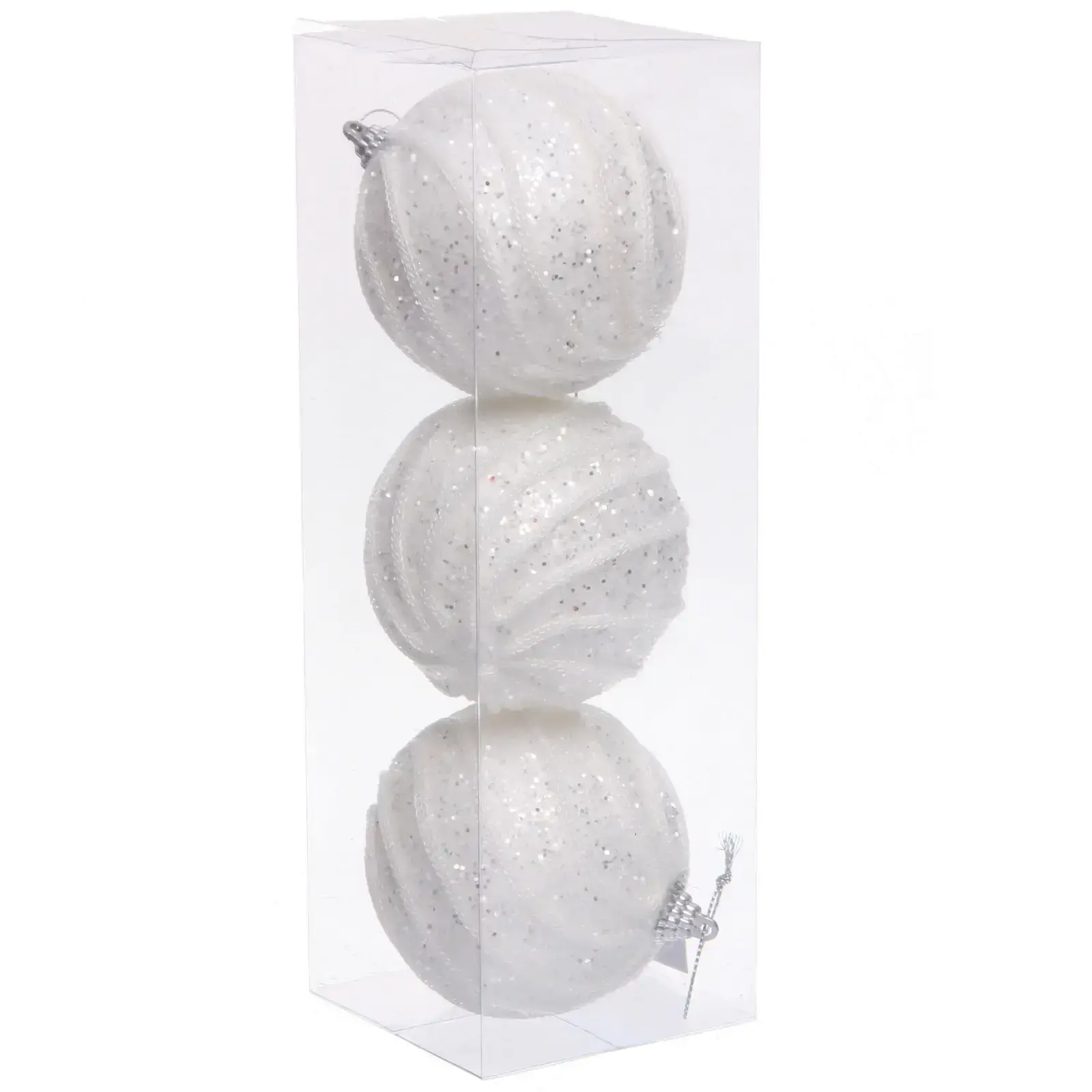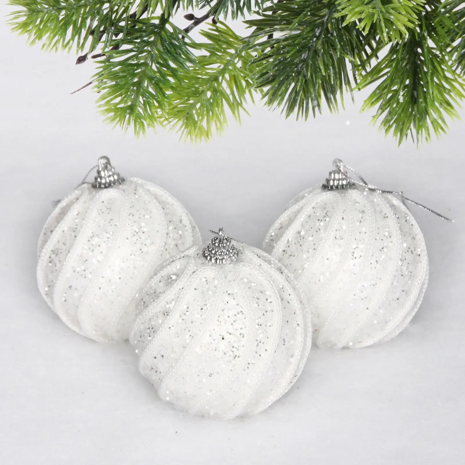 Новогодние шары «GLAME - Блестящий мир» 8 см (набор 3 шт), Белый, пластик, для елки и декорирования