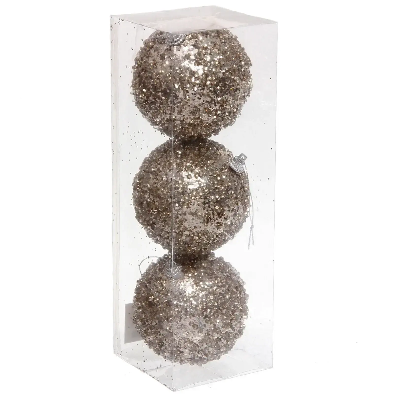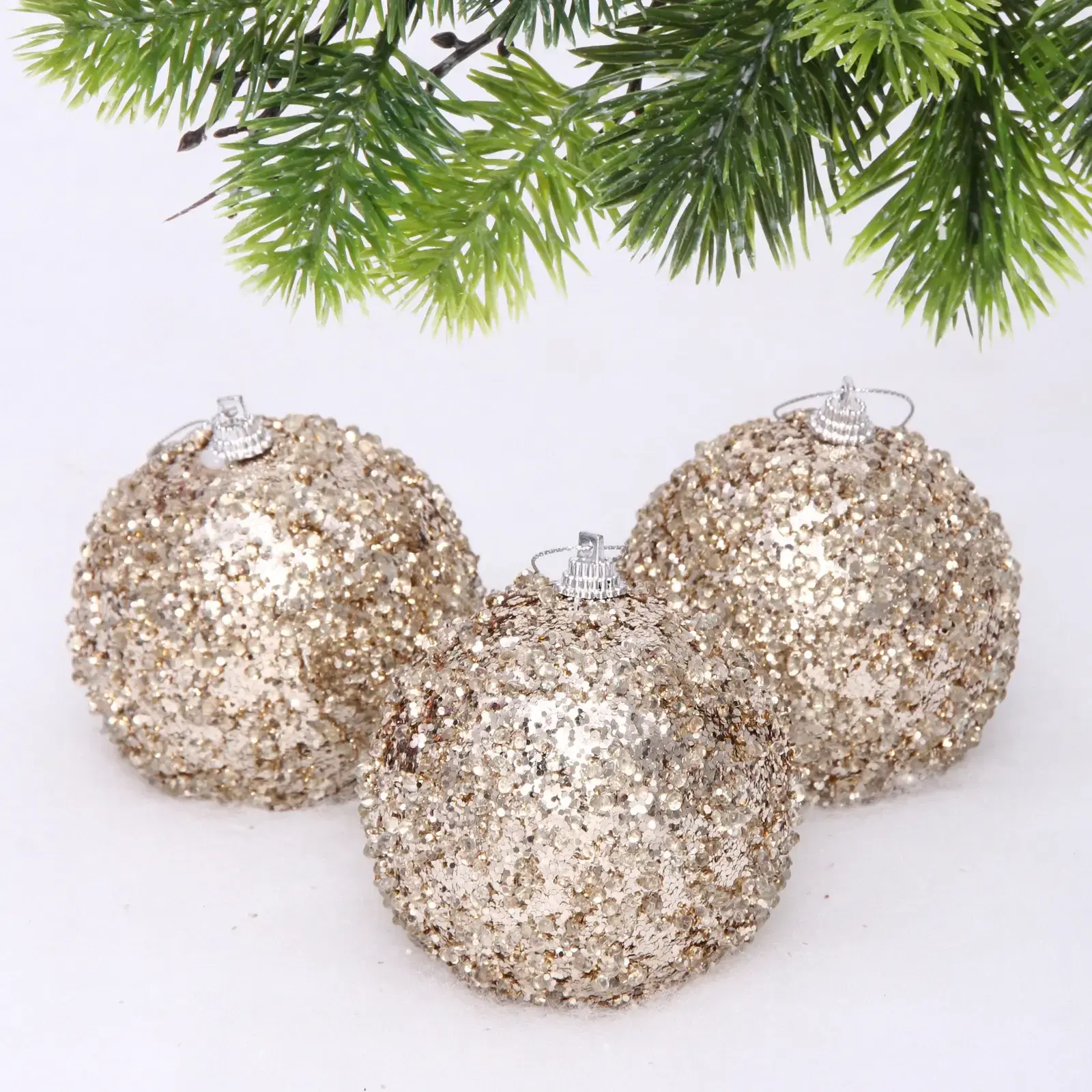 Новогодние шары «GLAME - Искра» 8 см (набор 3 шт), Шампань, пластик, для елки и декорирования